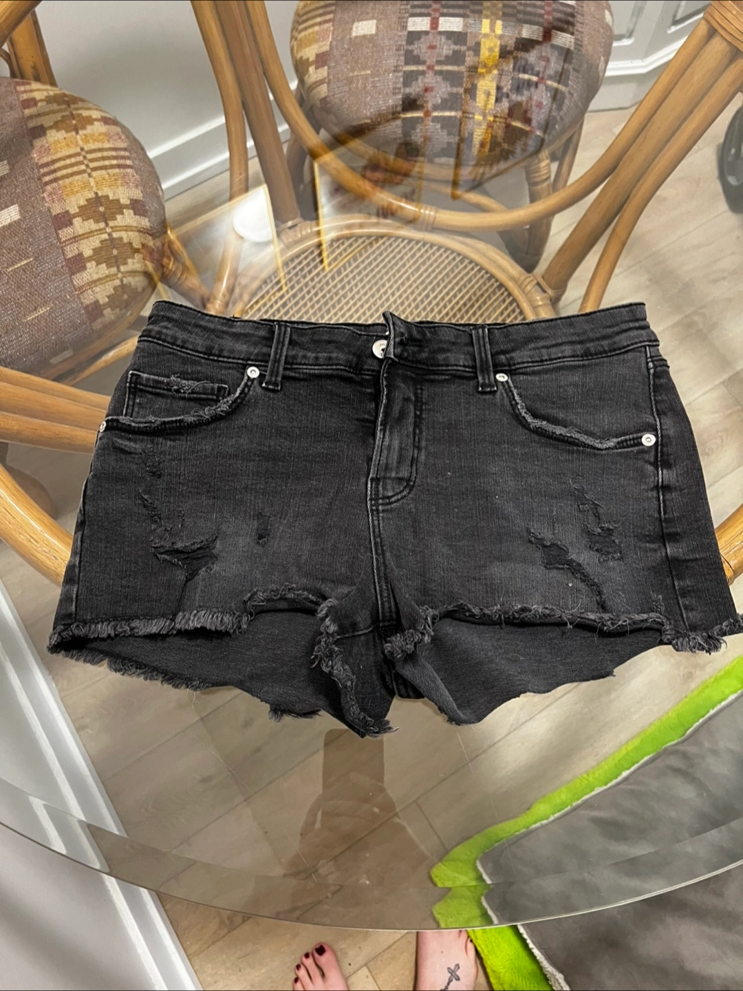 These Zara black denim shorts are in great condition and ready for a new home! They're a size 8 and feature a stylish, frayed hem. Perfect for a casual summer look!