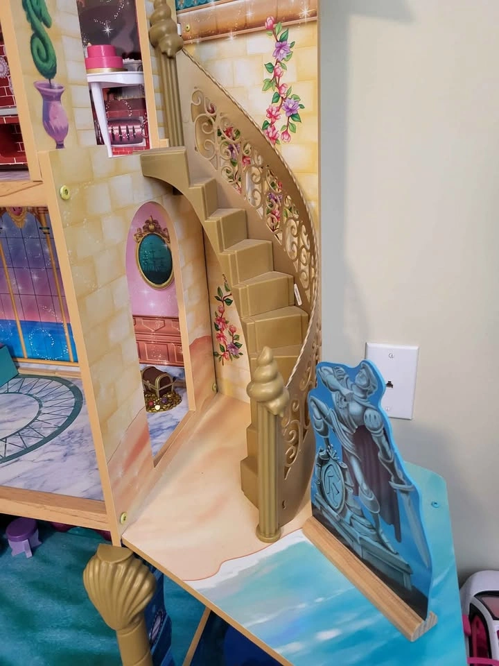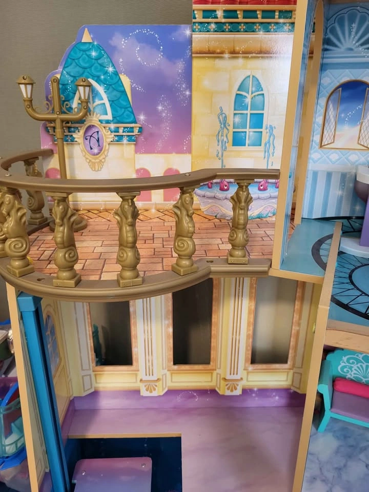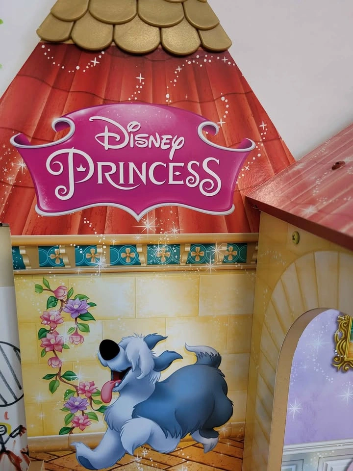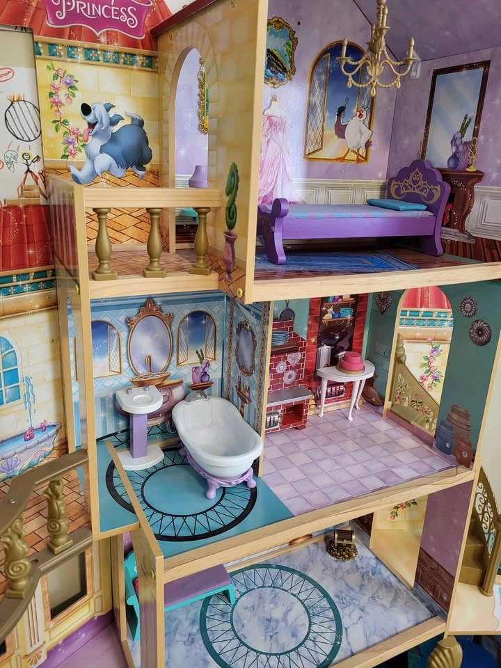 12Large Disney dollhouse. Made of wood. Stands 5 feet tall and 4 feet wide. Kids barely used it and now outgrown. Comes with all the accessories seen in pics.