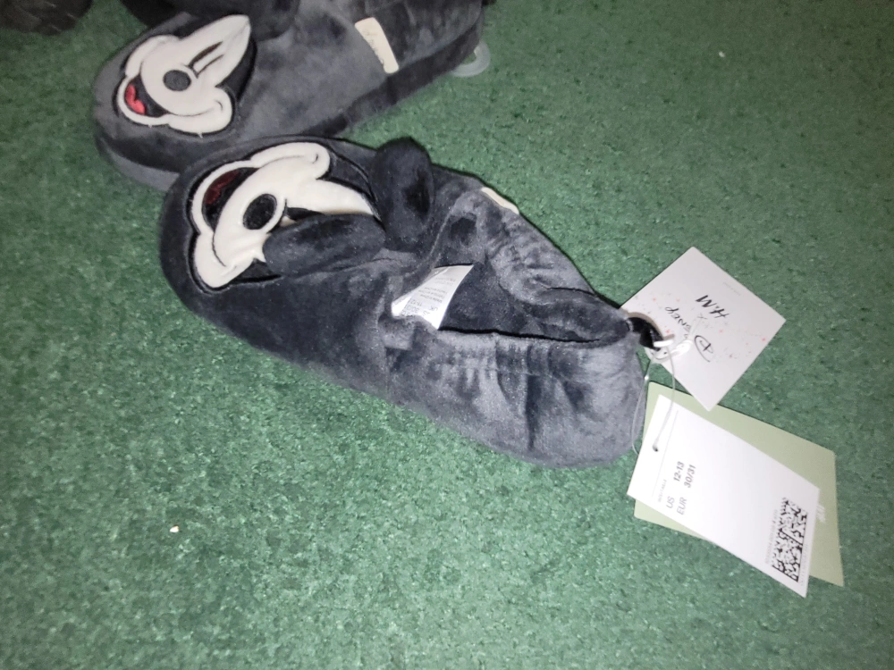 These adorable H&M slippers feature Mickey Mouse! They are a size 12-13. Perfect for keeping your little one's feet warm and cozy with a touch of Disney magic. new with tags