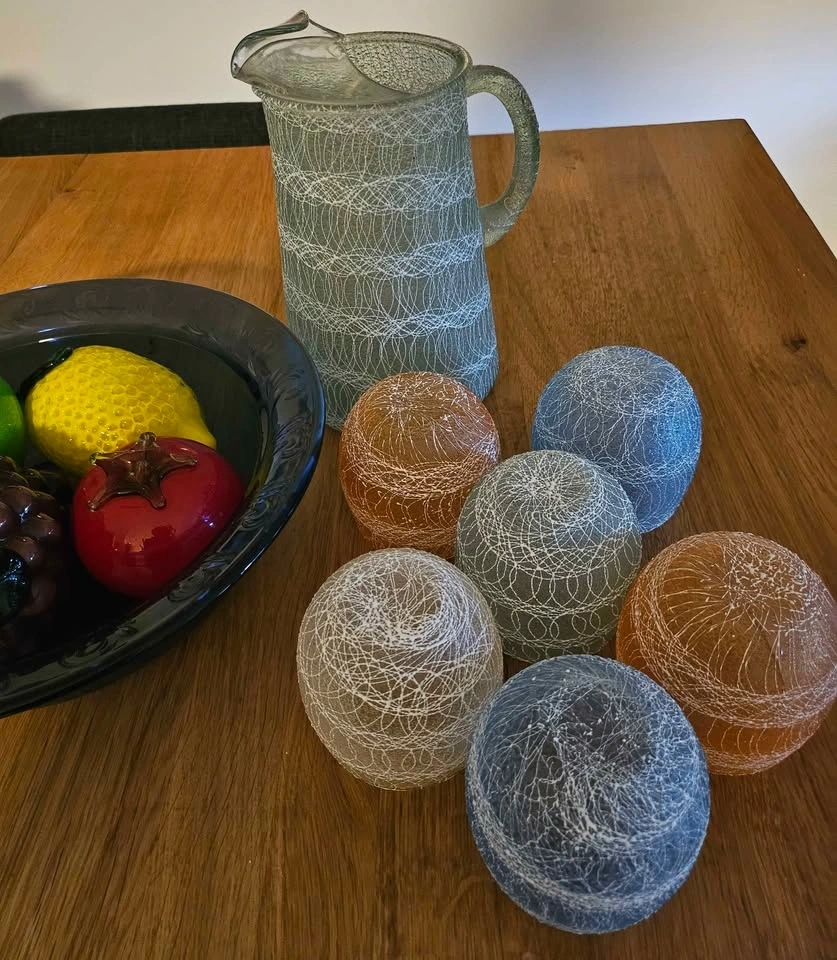 MCM "Spaghetti String" Pitcher & Roly-Poly Glass Set