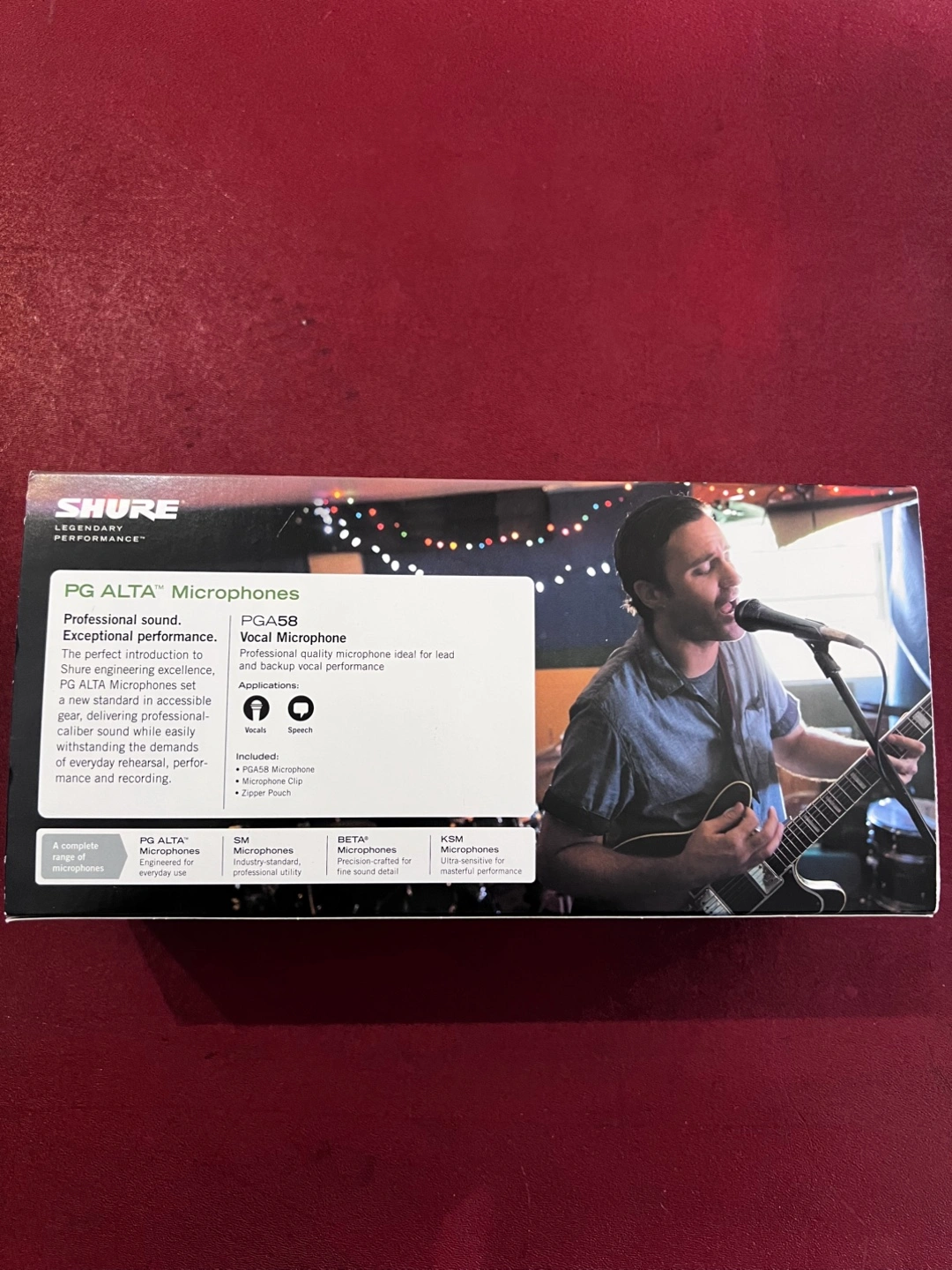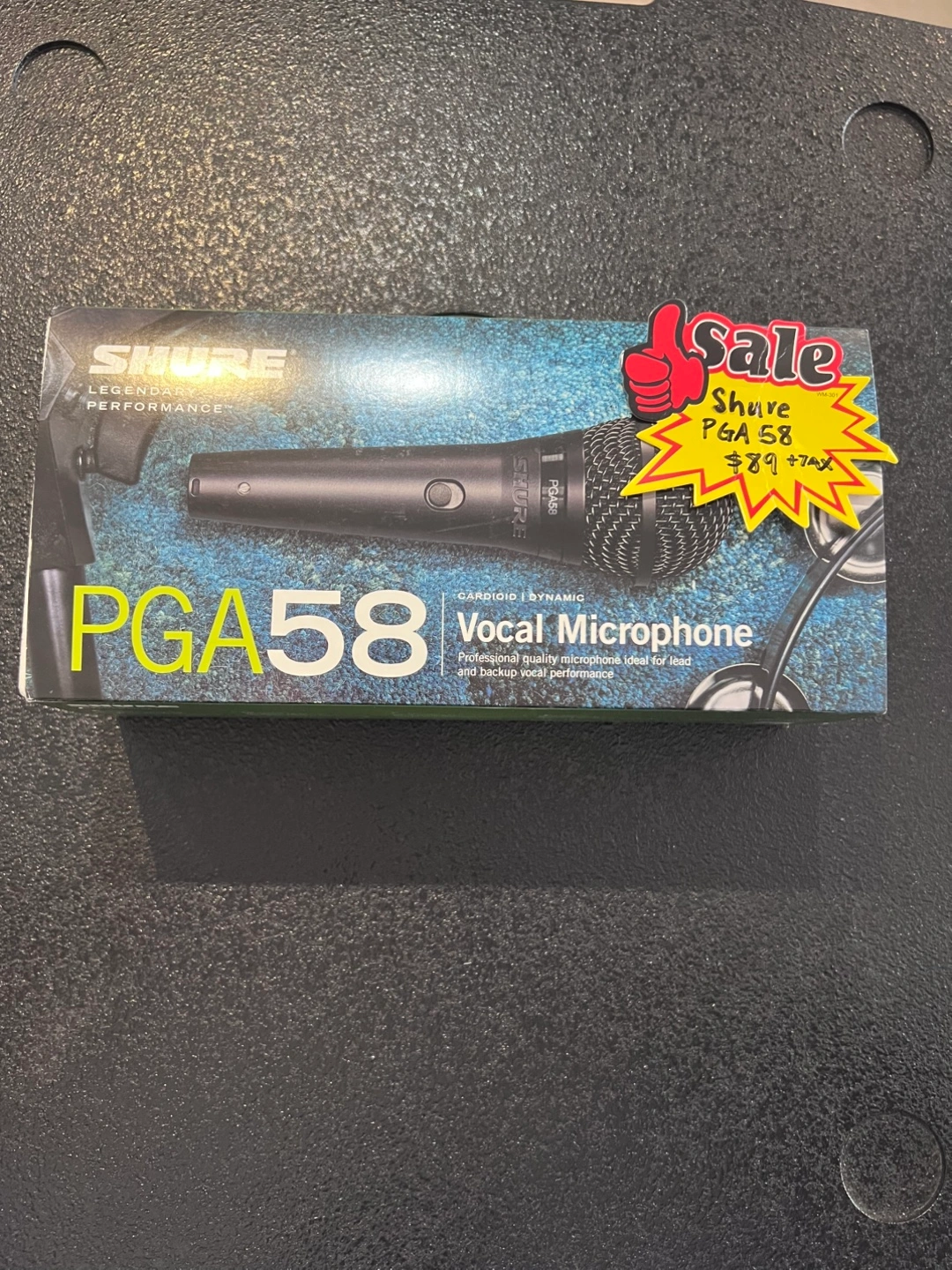 Selling a Shure PGA58 vocal microphone! This professional-quality microphone is ideal for lead and backup vocal performance. It features a cardioid polar pattern and dynamic cartridge. Get yours today!