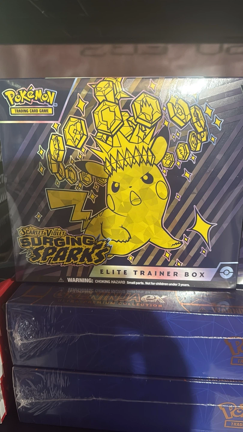 Selling a brand new Pokémon Trading Card Game Scarlet & Violet Surging Sparks Elite Trainer Box! It's still sealed in its original packaging and ready for a new home. Warning: Choking hazard, small parts, not for children under 3 years