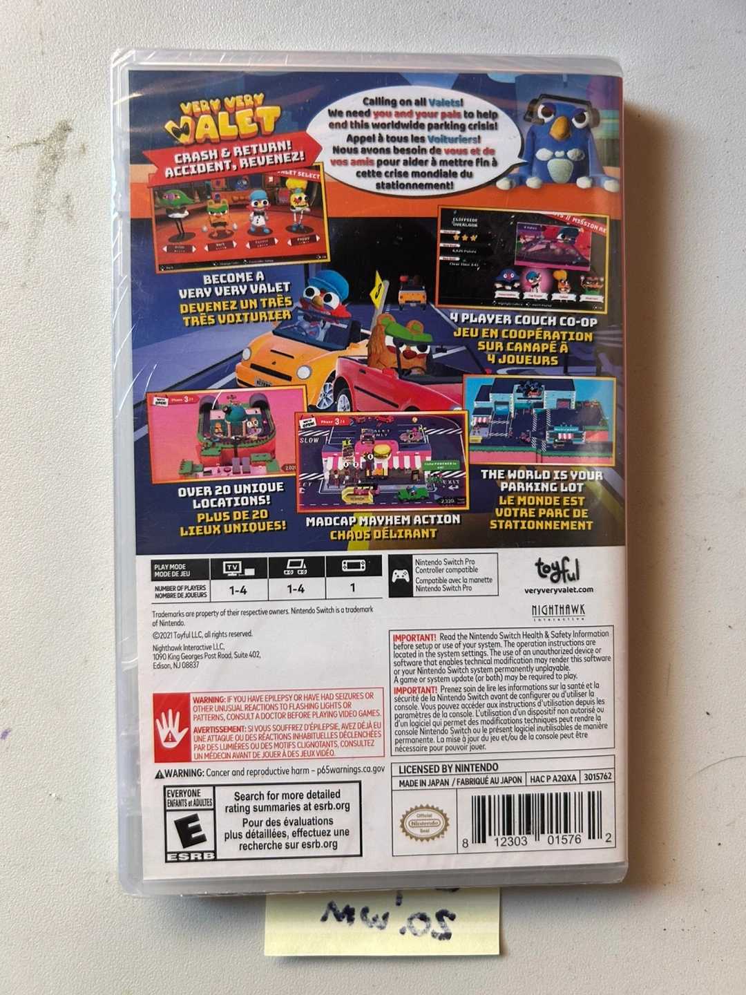 Selling Brand new game Very Very Valet for Nintendo Switch! It's a fun 1-4 player couch co-op game where you become a valet and cause mayhem in the parking lot. Comes with exclusive Valet DLC!