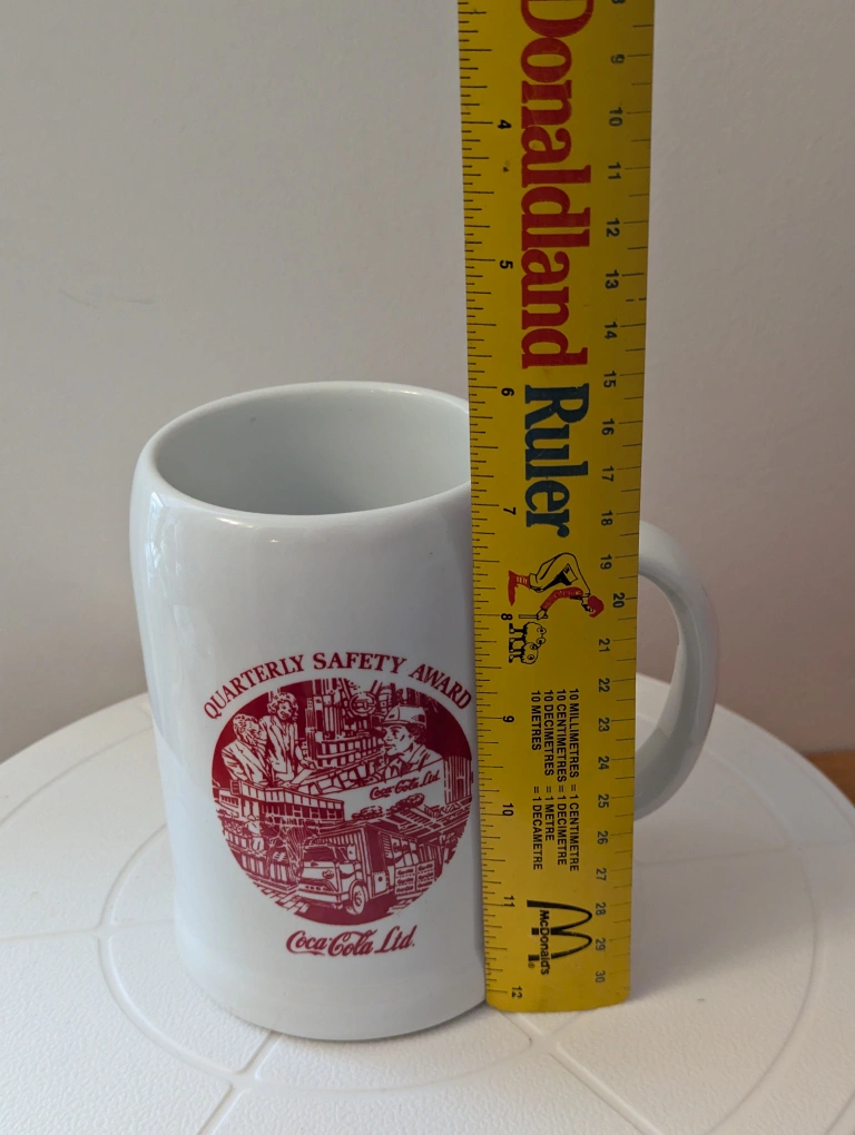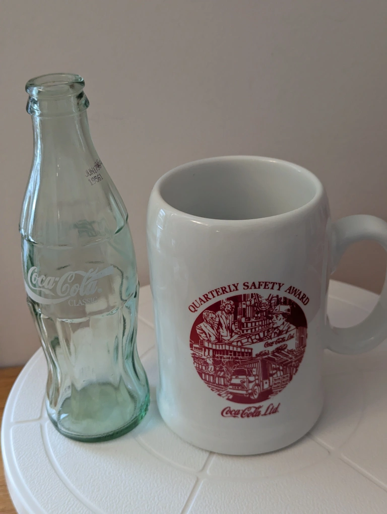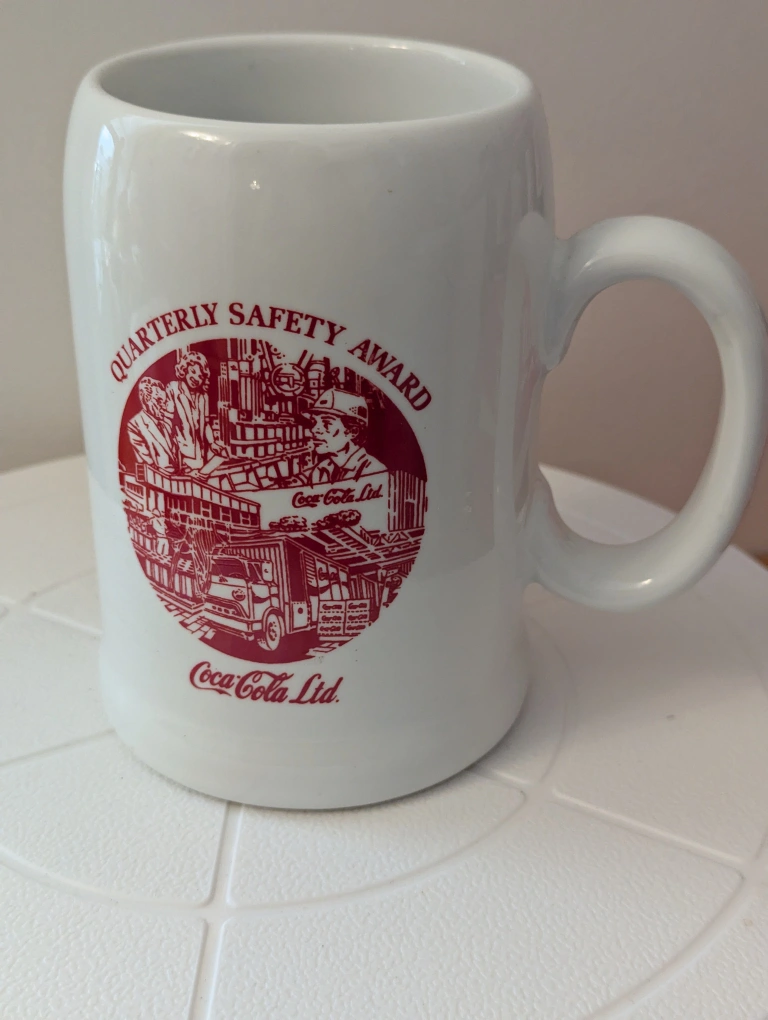 Selling a Large Coca-Cola Quarterly Safety Award mug! I bought this off of someone who worked for Coca Cola. This wasn't made for the Collectors market so it's one of my cooler pieces that I am selling. 7 inches tall.