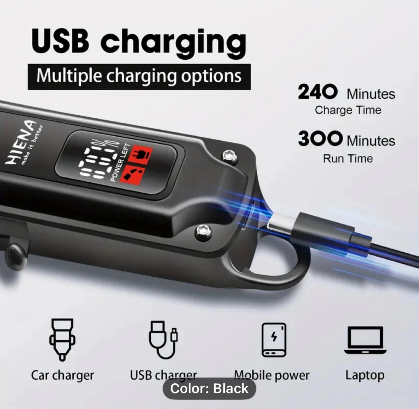 HIENA Electric Hair Clipper with LED Battery Display, USB Rechargeable Cordless Trimmer for Home Use & Salon Styling, Beard Trimmer - Perfect Gift for Men
