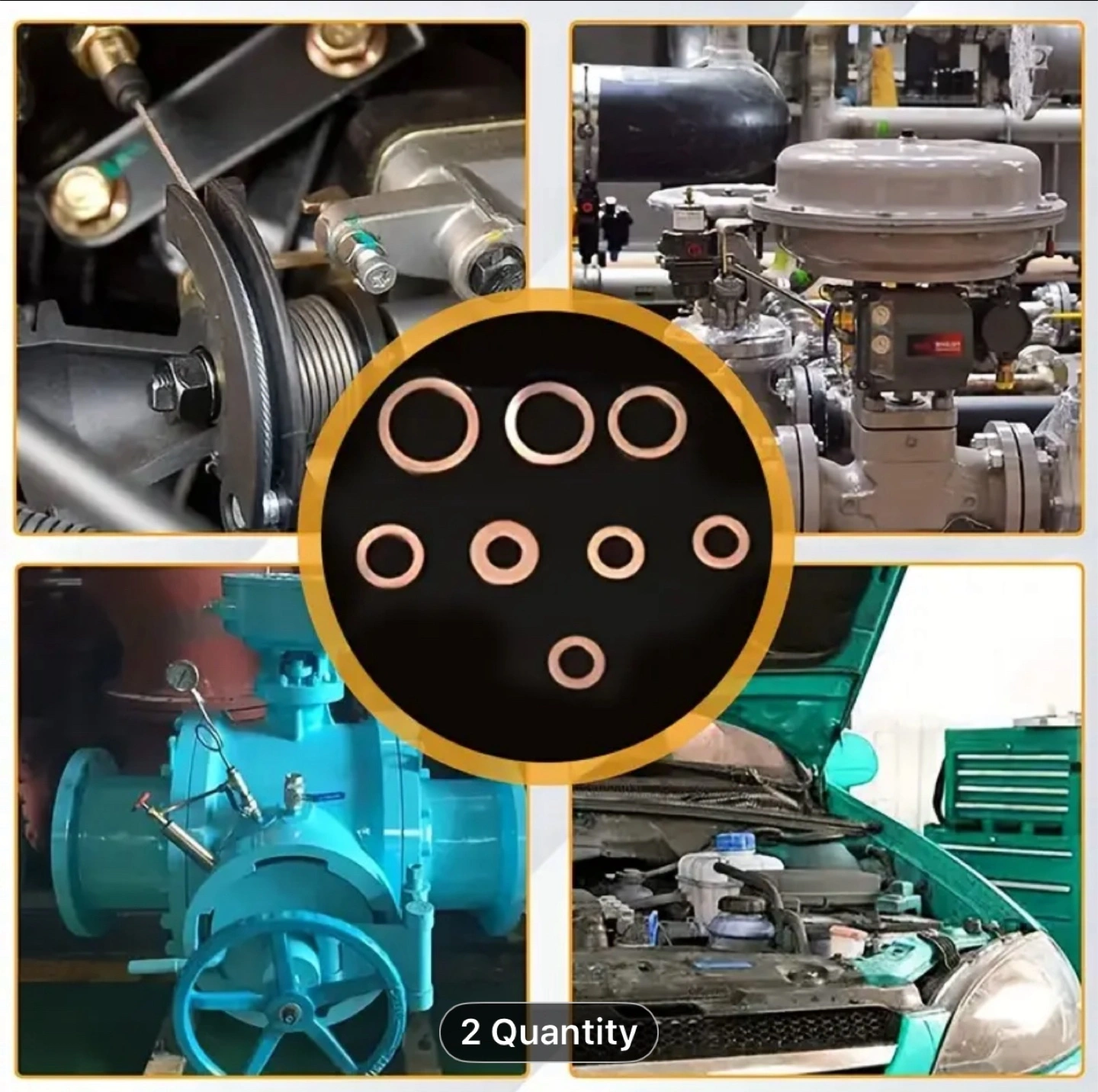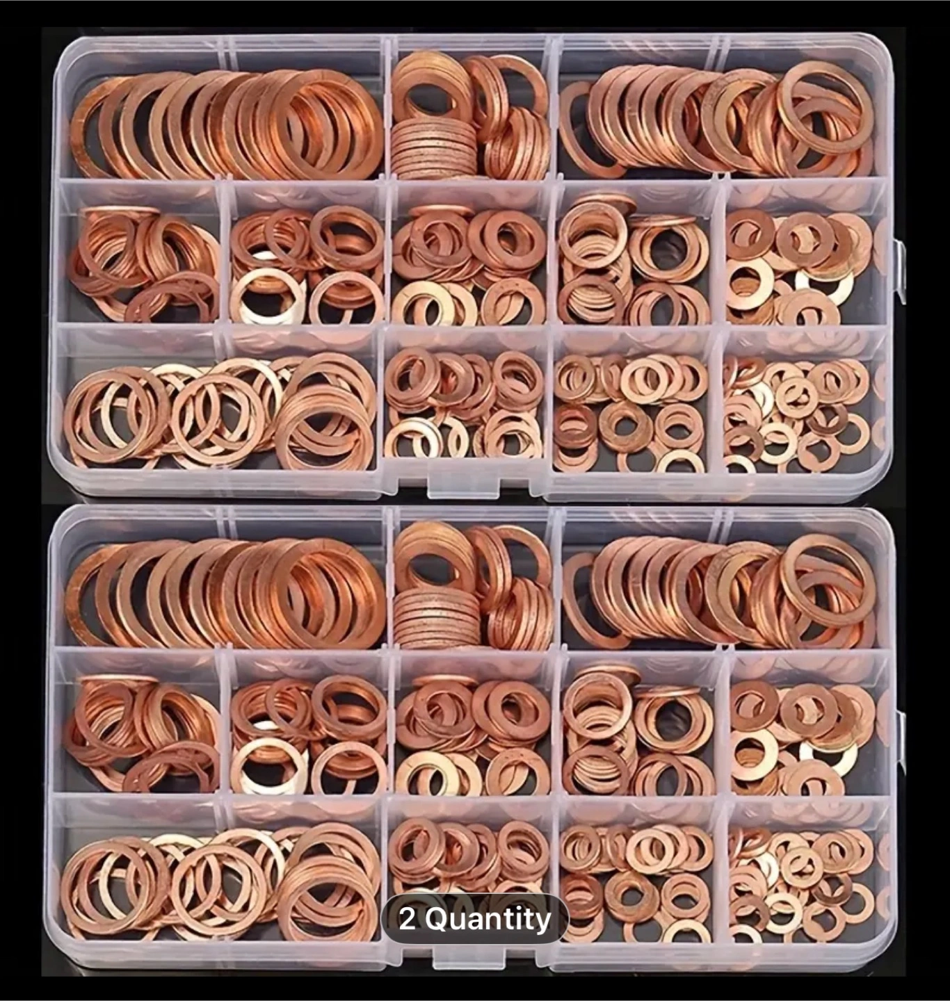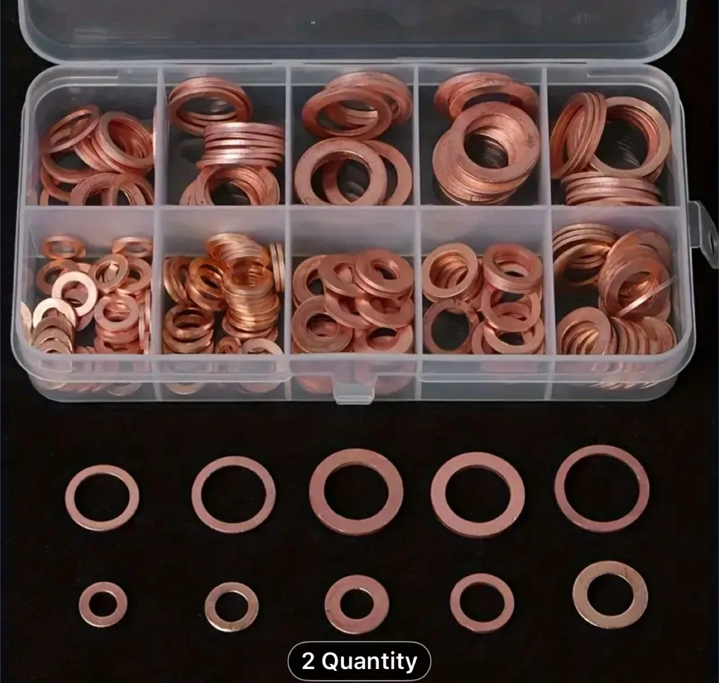 100pcs Copper Sealing Gasket Master Kit - Push Rod Tube Seal Assortment with Flat Ring Seals, Nuts, and Bolts - Complete Set in Sturdy Box for Various Applications
