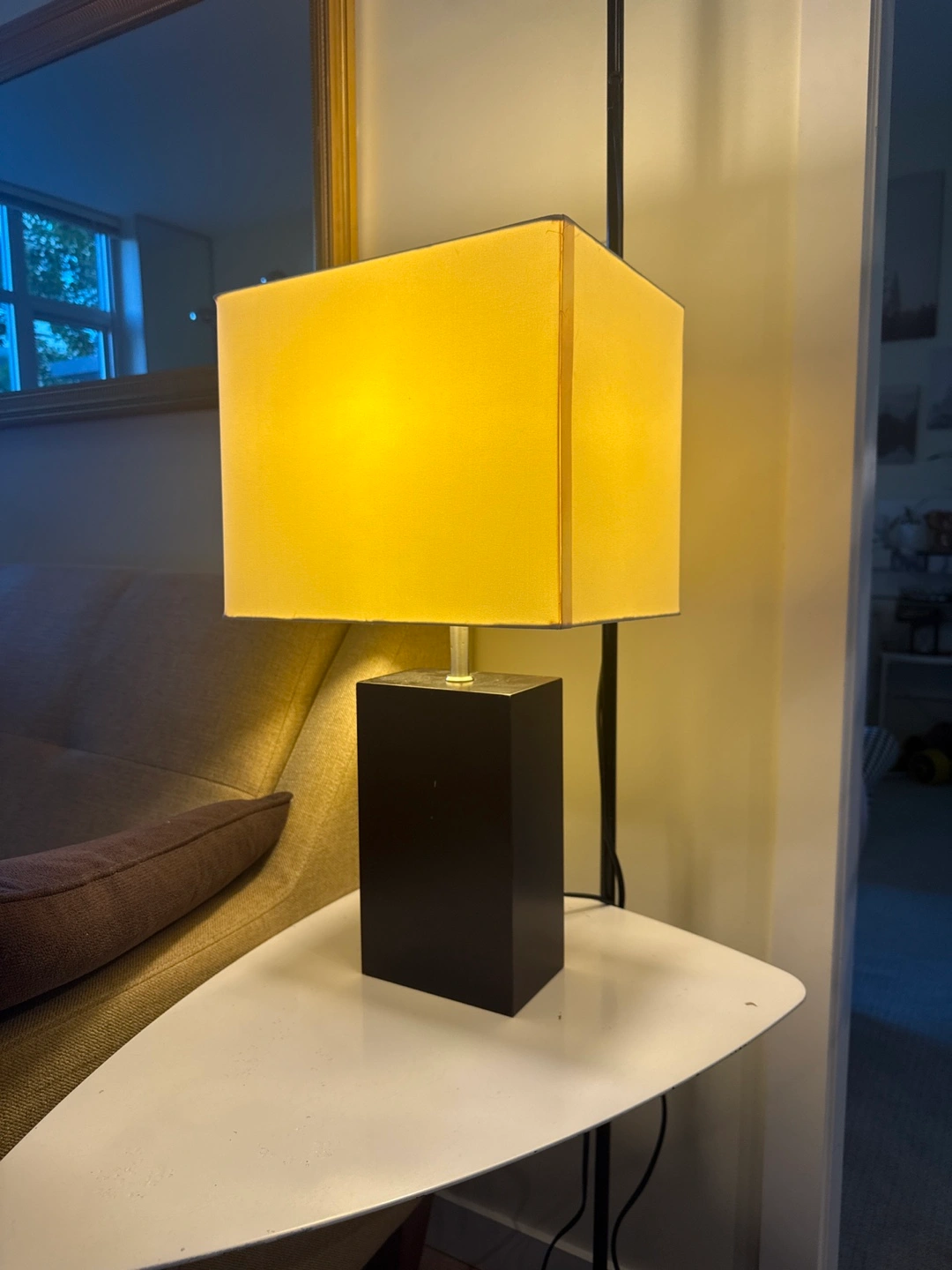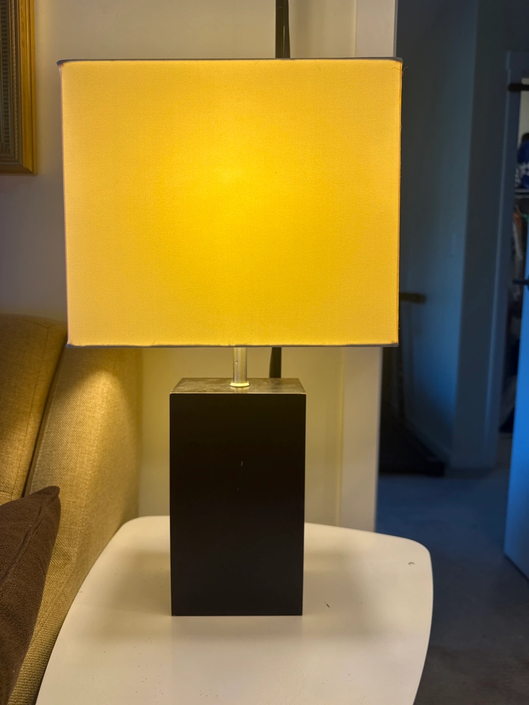 Add a touch of modern elegance to your space with this stylish table lamp! The black cube base and rectangular shade create a chic and contemporary look that complements any decor