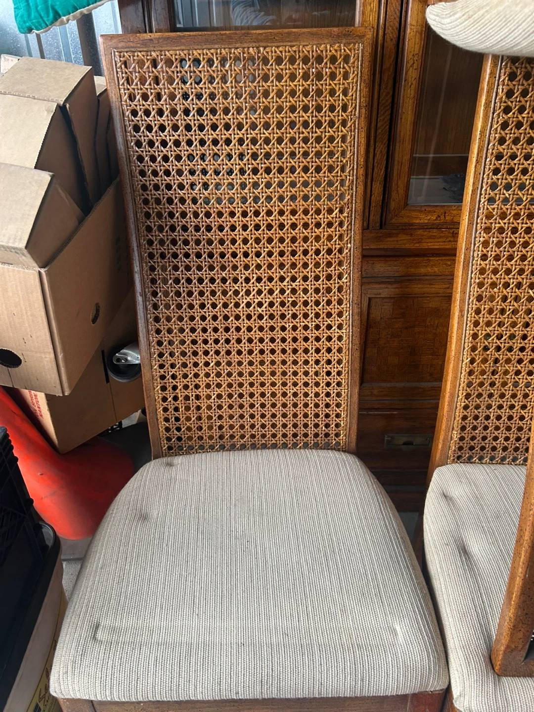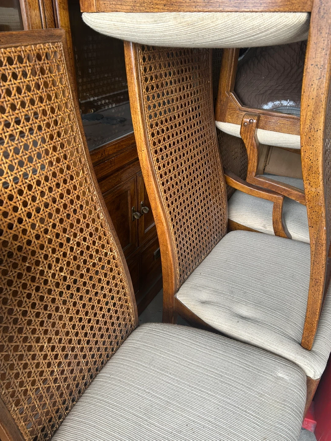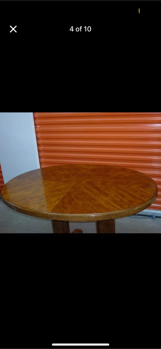 Thomasville Oak Pedestal Table w 6 Chairs and 2 leaves. Pictured are 5 of the 6 chairs. The set has 2 armed chairs. Used but in immaculate condition. This offering is part of a storage locker liquidation that includes various other items. Measurements 52"Hx42"Wx31"H. Pick up near Piegan Trail SE. Feel free to message if you have any questions!