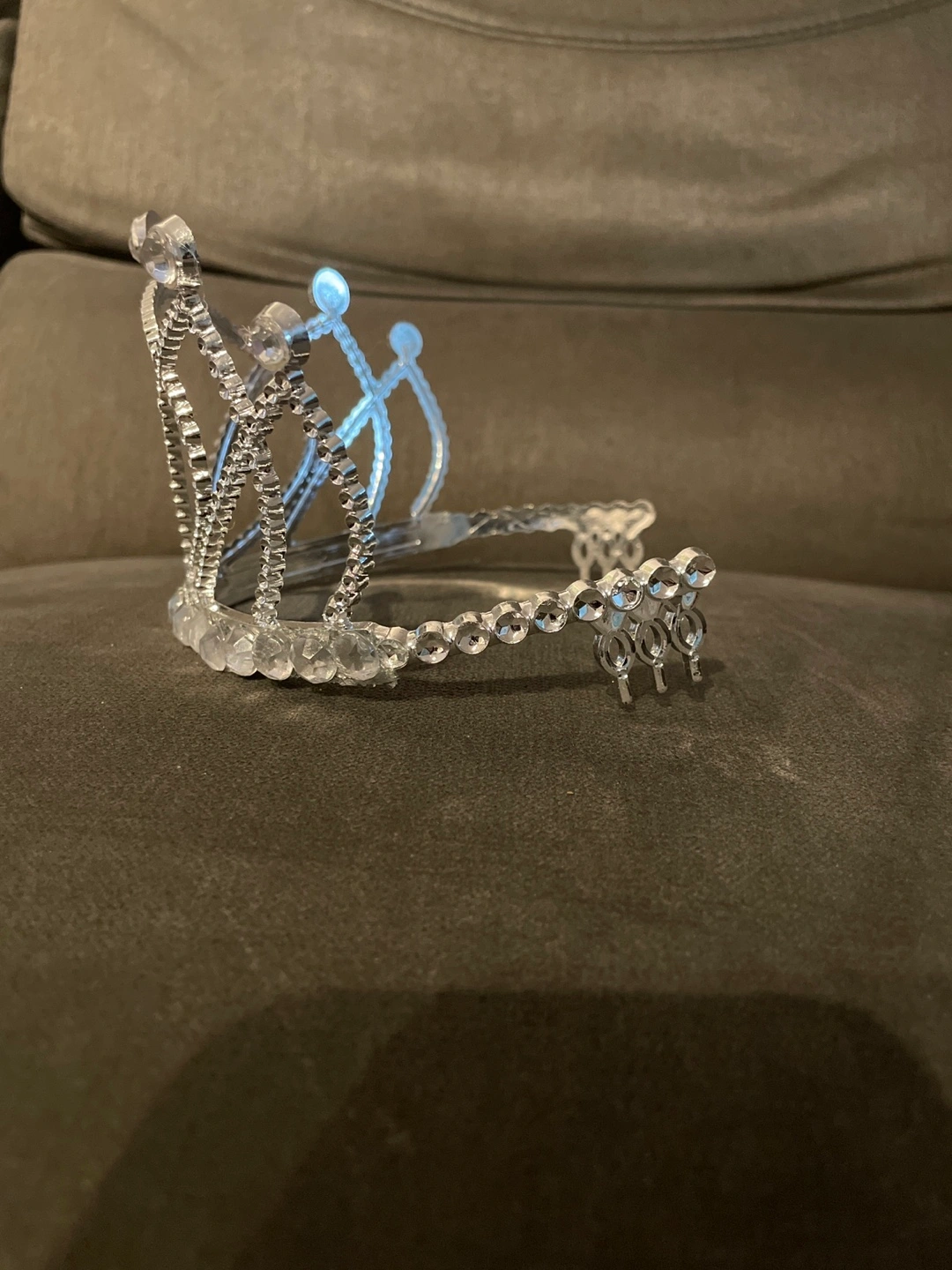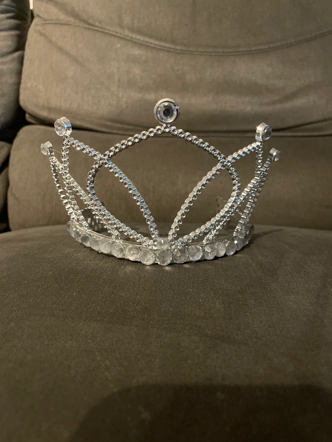 Selling a plastic silver tiara with rhinestone accents! It's in great condition and would be perfect for a costume, party, or just for fun. The tiara is lightweight and comfortable to wear.