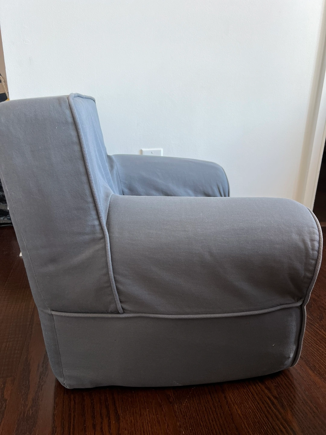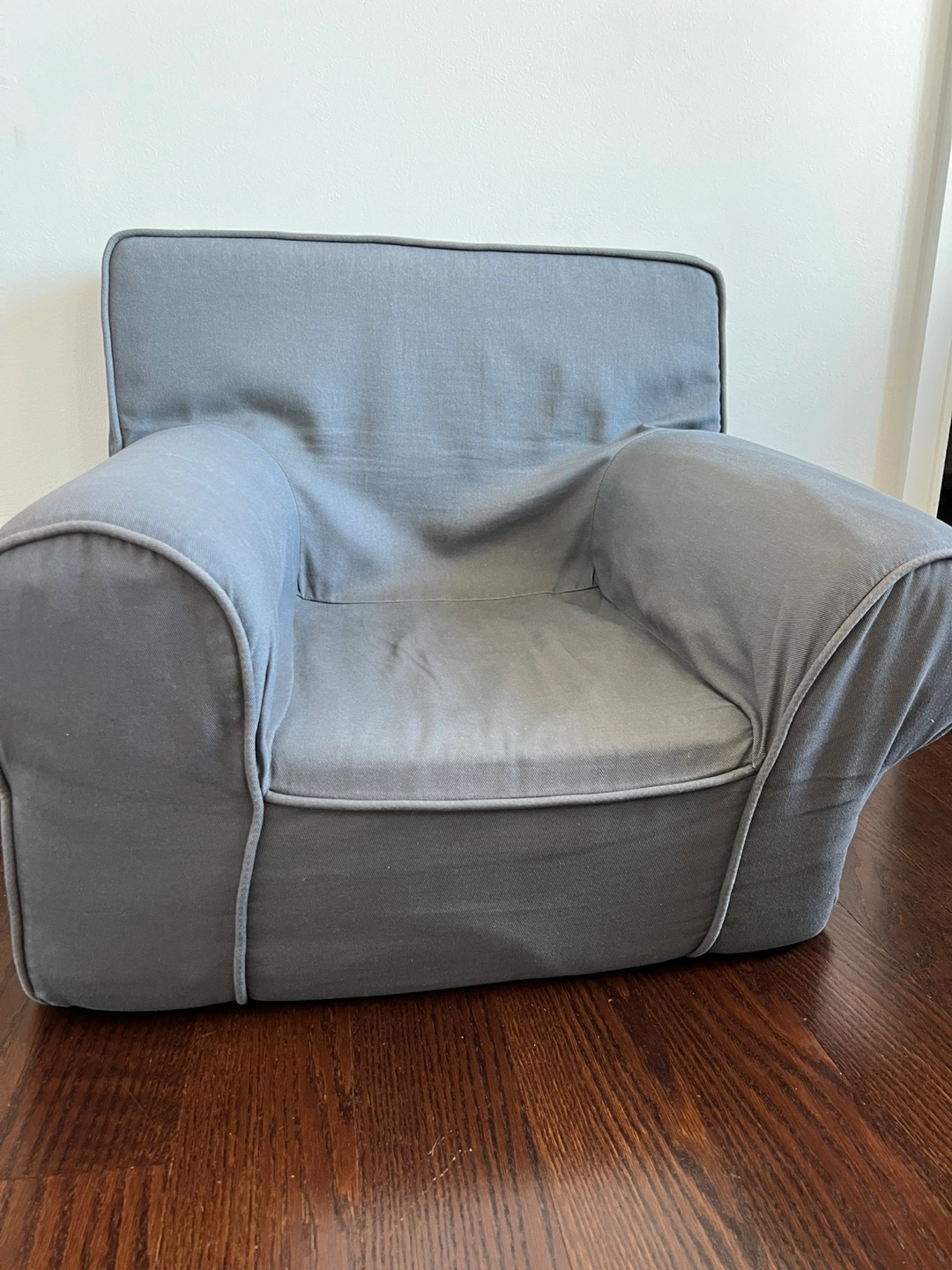 16Selling a Pottery Barn Kids Anywhere Chair in grey! It's in good condition and perfect for a little one's room or play area. The cover is removable and machine washable, making it easy to keep clean. Just remove the interior parts before washing on a gentle cycle with cold water. Tumble dry low and warm iron if needed. A cozy and practical addition to any home! Right arm is a bit wobbly from play, but otherwise good.