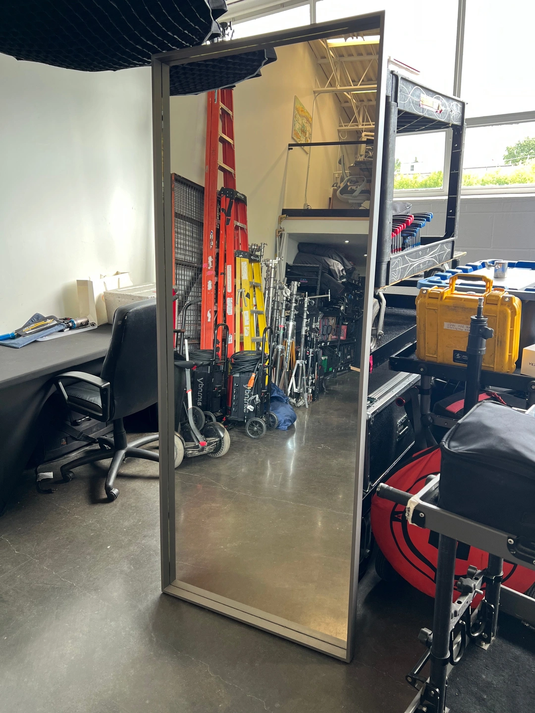 Industrial-style floor length wall mirror with a raw iron finish. This mirror usually sells new for $1,300+. Take advantage of getting this stylish piece for less with this listing: only $850!