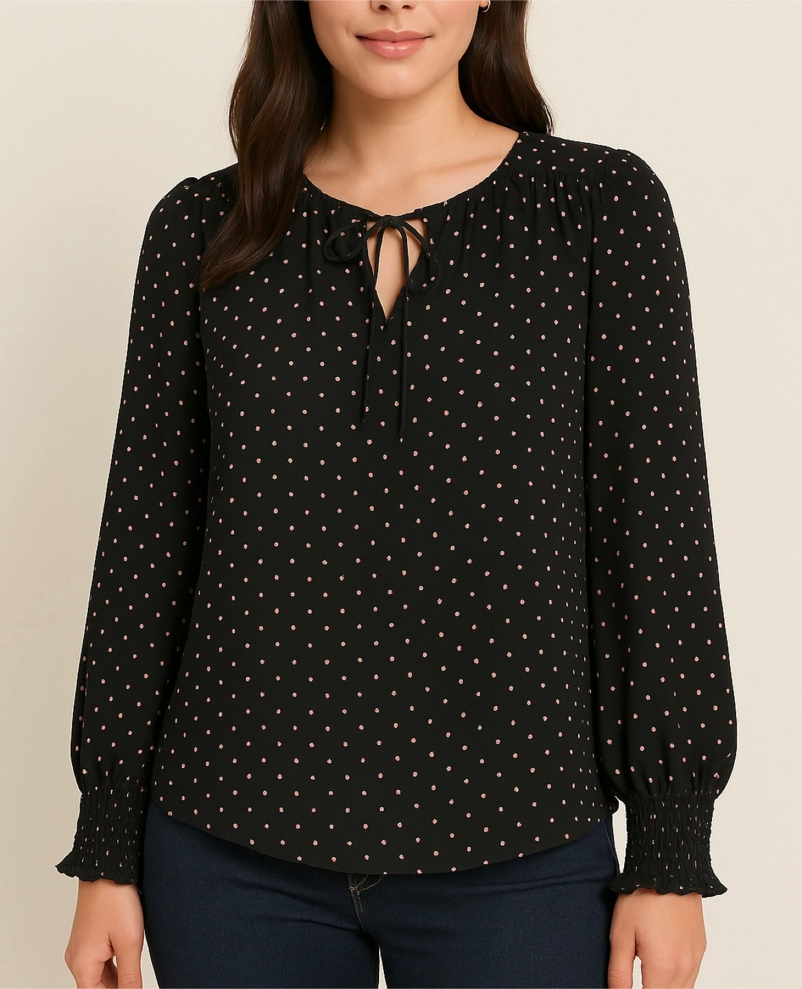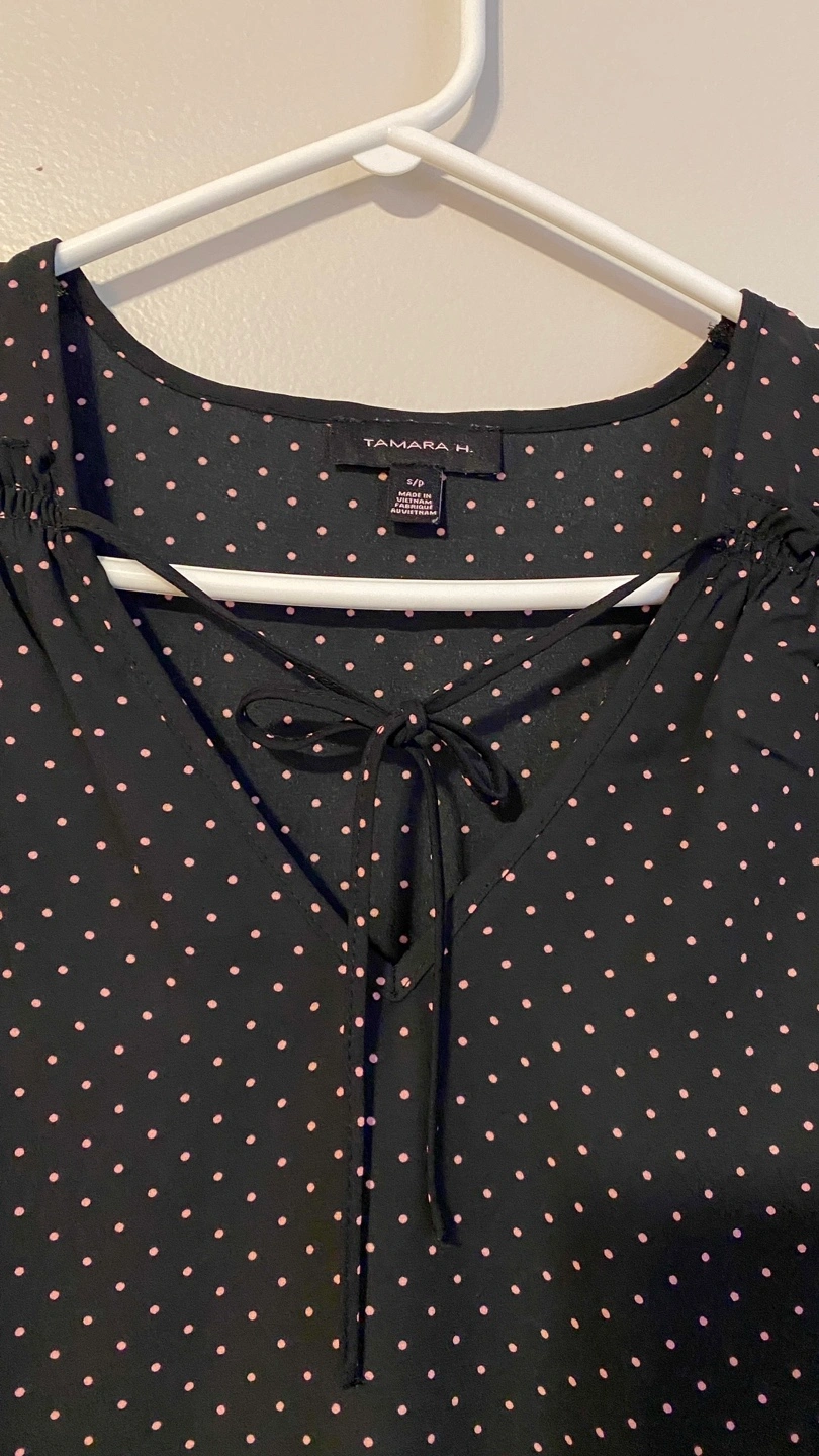 Black blouse with pink polka dots. Size small. In a great condition almost new.