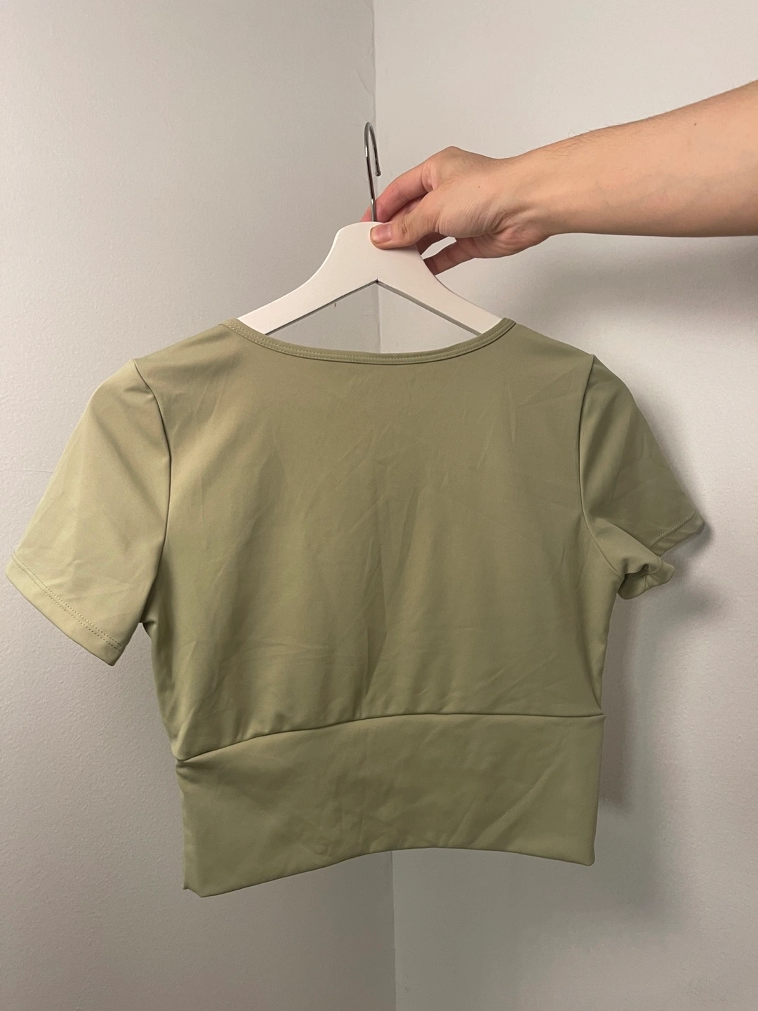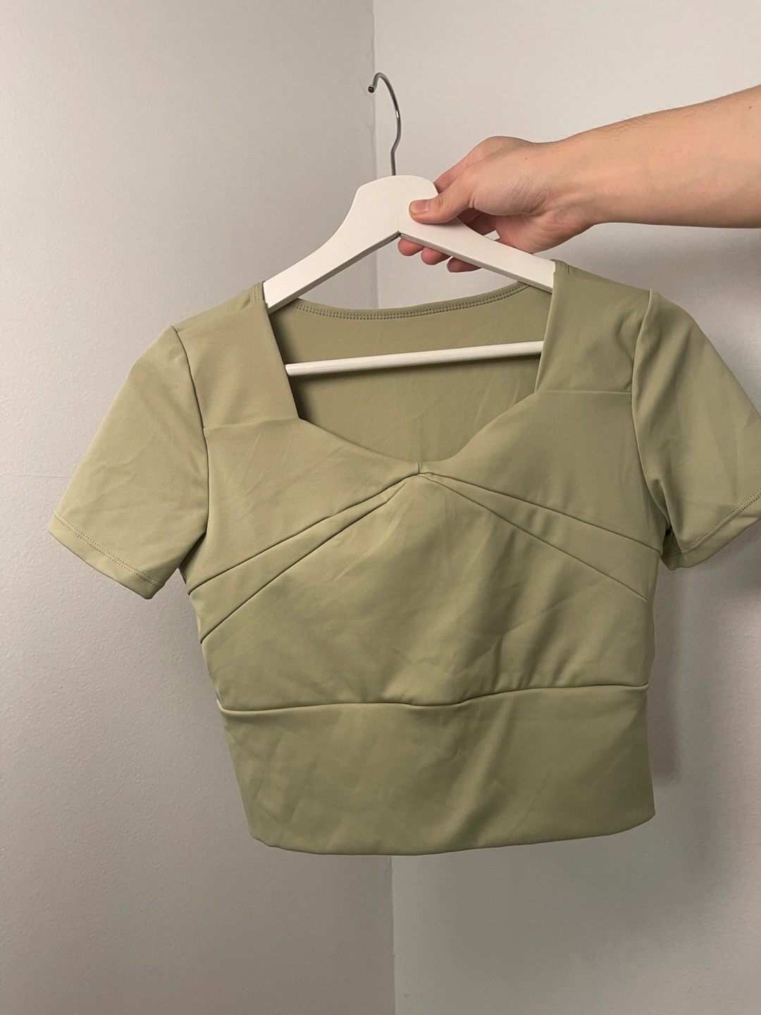 A cute green cropped top, perfect for summer! It's a size small and in great condition. The material is lightweight and comfortable, great for everyday wear and exercise! Bought it for $30