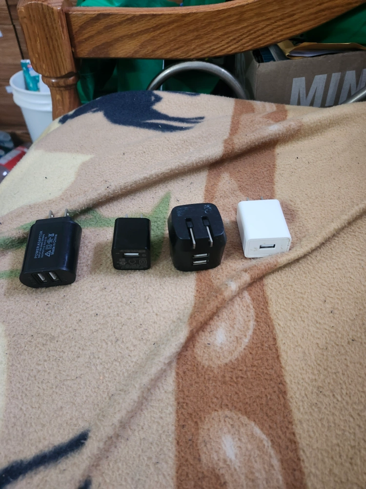 I'm selling a collection of USB power adapters. They come in black and white colours. Great for charging your devices! Five bucks each