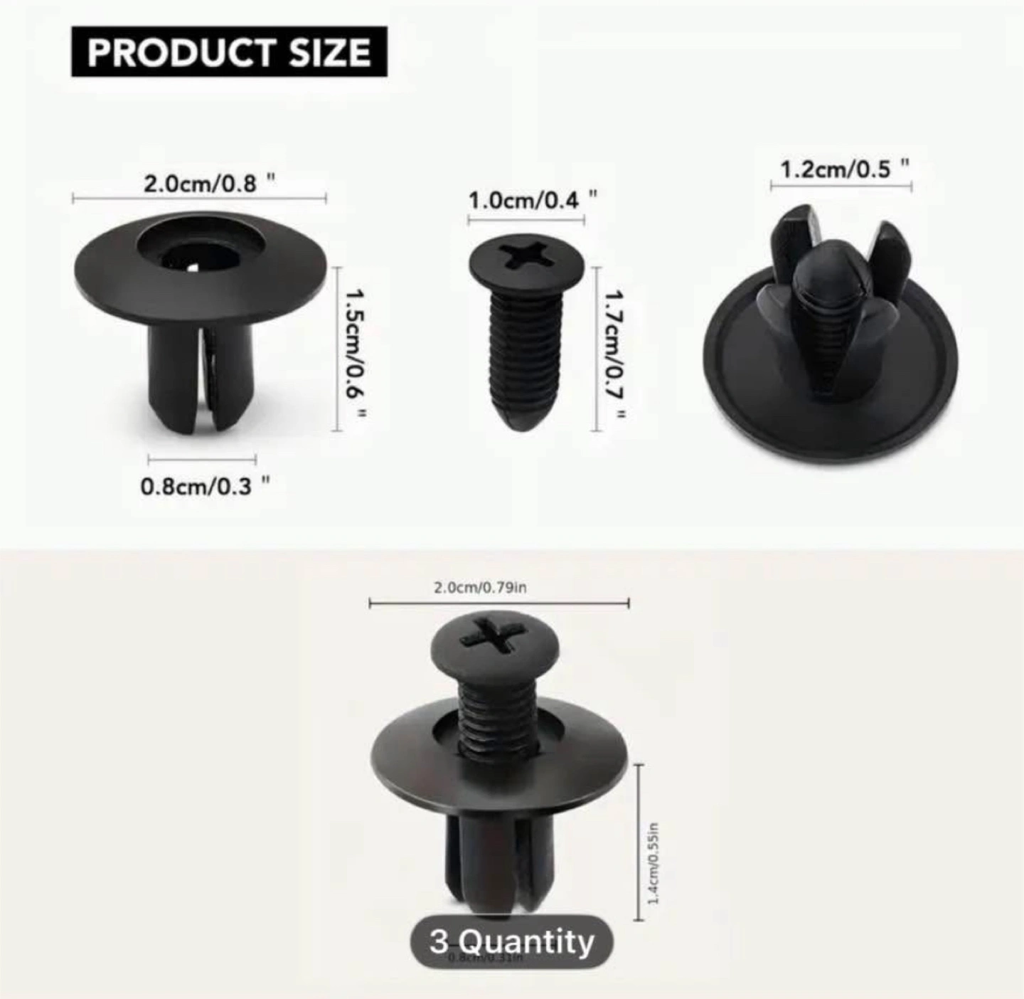 100pcs Black Plastic Rivets - Wall Mount Easy Install Car Bumper Fasteners for Toyota, Ford, Kia, Nissan, Yamaha - Versatile Accessory Rivet Screws for Car Repair and Accessories