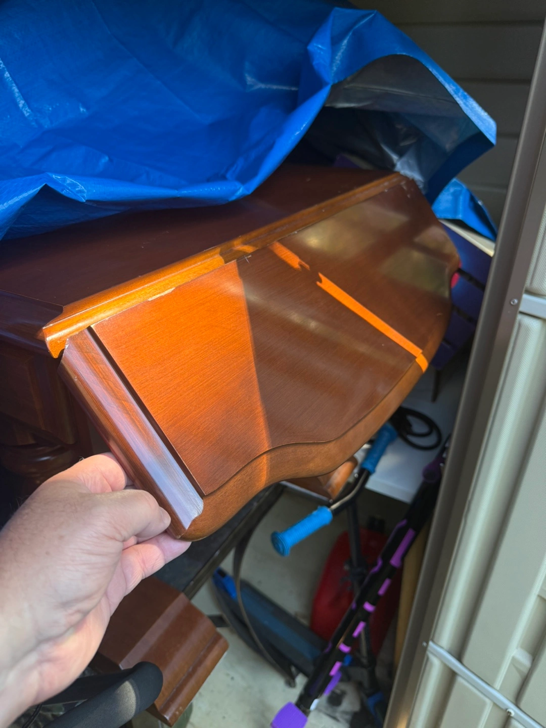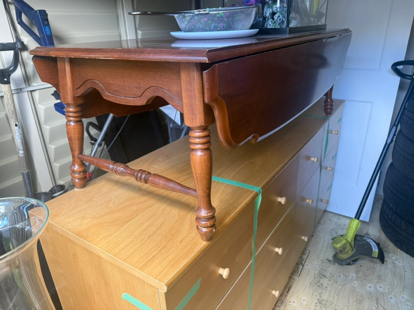 Selling a drop leaf coffee table and set of two drop leaf end tables. They're in good condition with a few scratches and scuffs. They would look great in any living room. The drop leaf design makes them versatile for smaller spaces too!