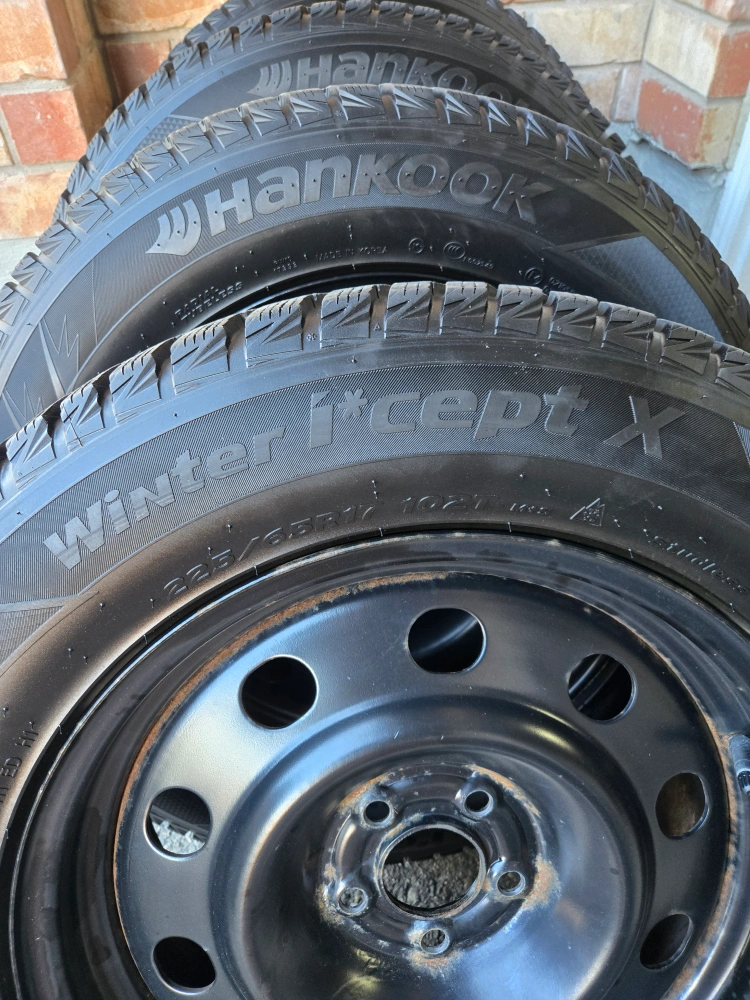 Full set of 4 Hankook i*cept X WINTER tires with black steel rims, already balanced and ready to go!