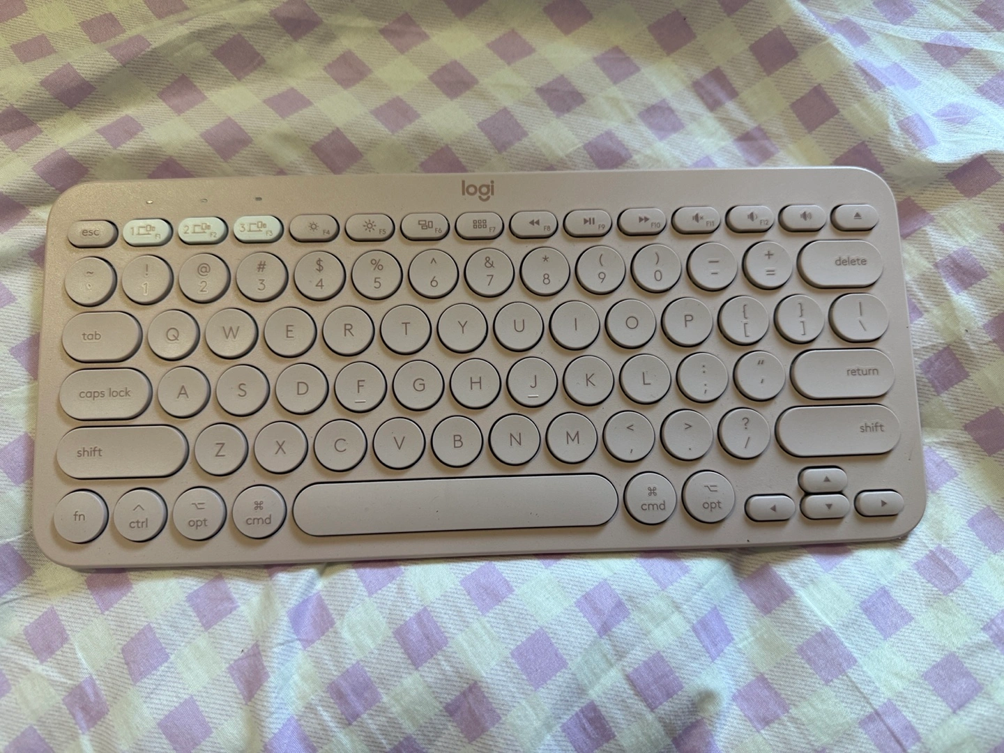Selling a Logitech K380 Bluetooth keyboard in a lovely lilac colour with box! This keyboard is perfect for using with multiple devices, making it super convenient for both work and personal use. It's in great condition and ready for a new home. The keys are nice and round, and it's a super cute keyboard!