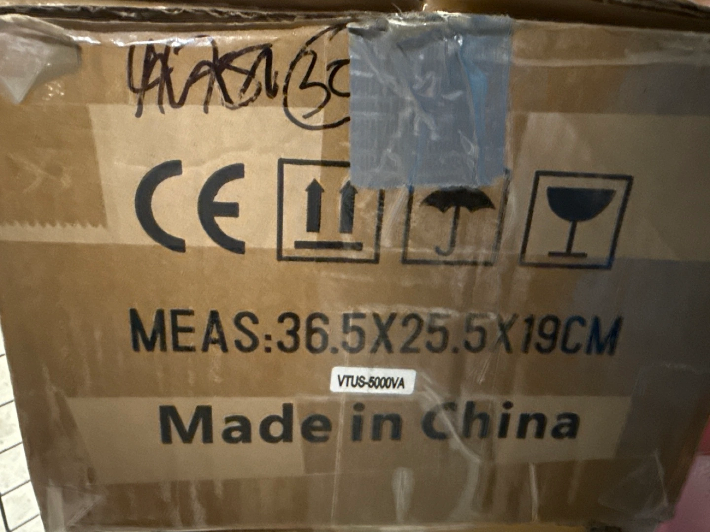 Selling a brand new VTUS-5000VA power supply still in its original box! The box indicates the measurements are 36.5 x 25.5 x 19 cm. Includes a power cord. Ready to go to a new home!
