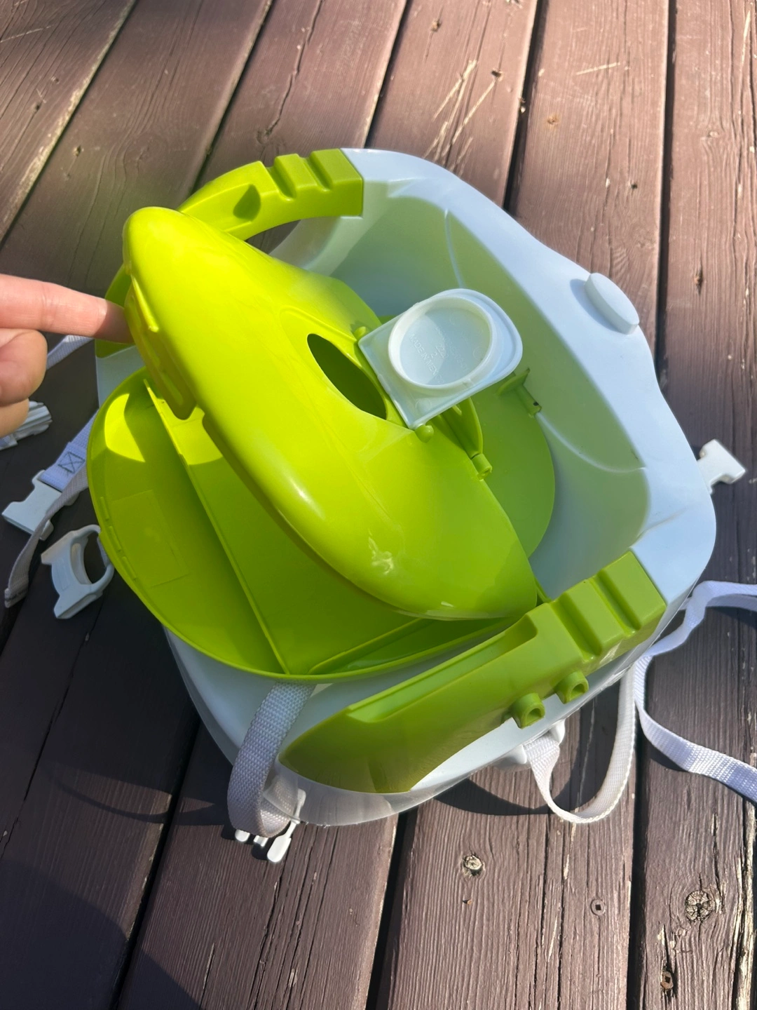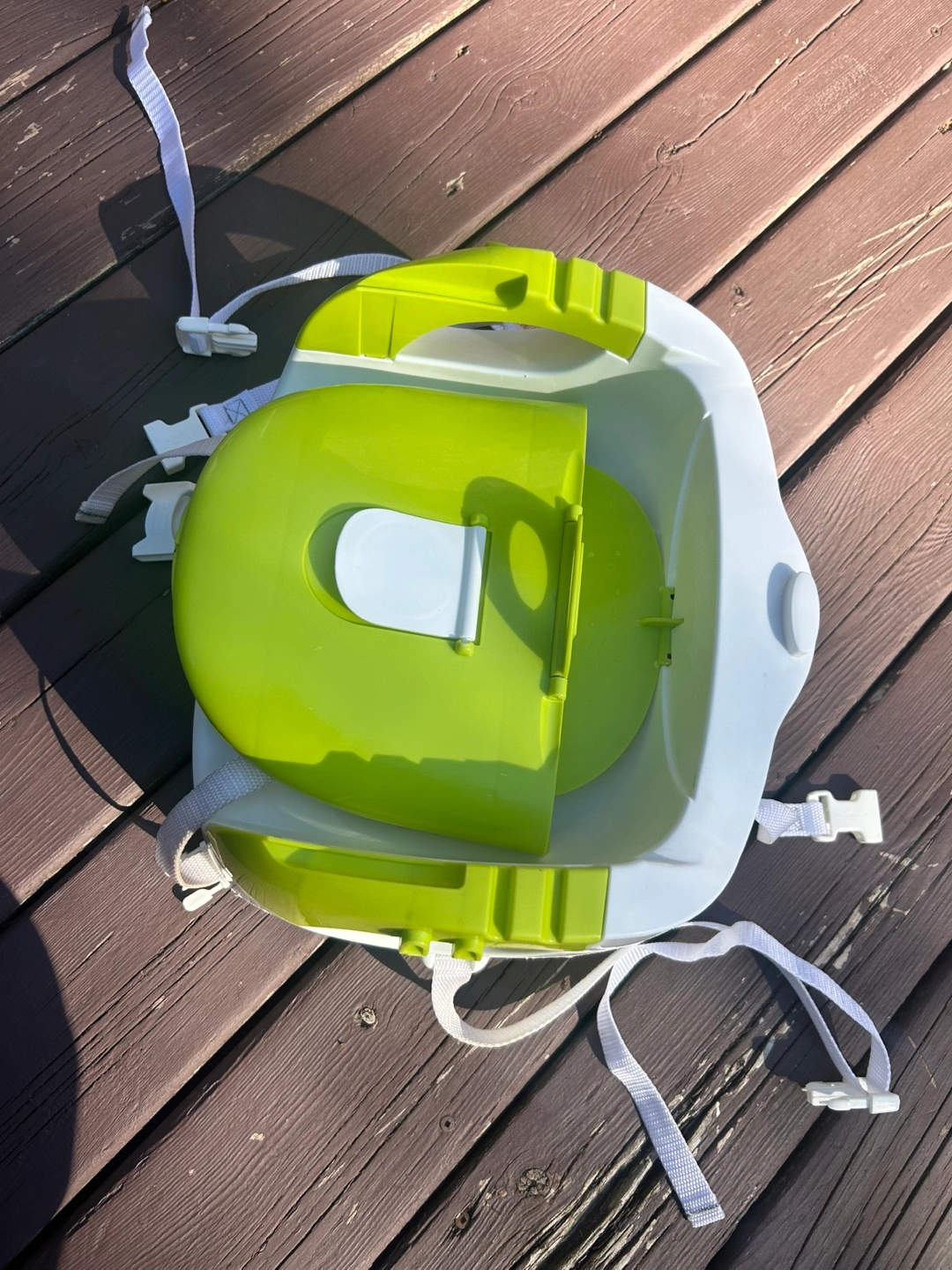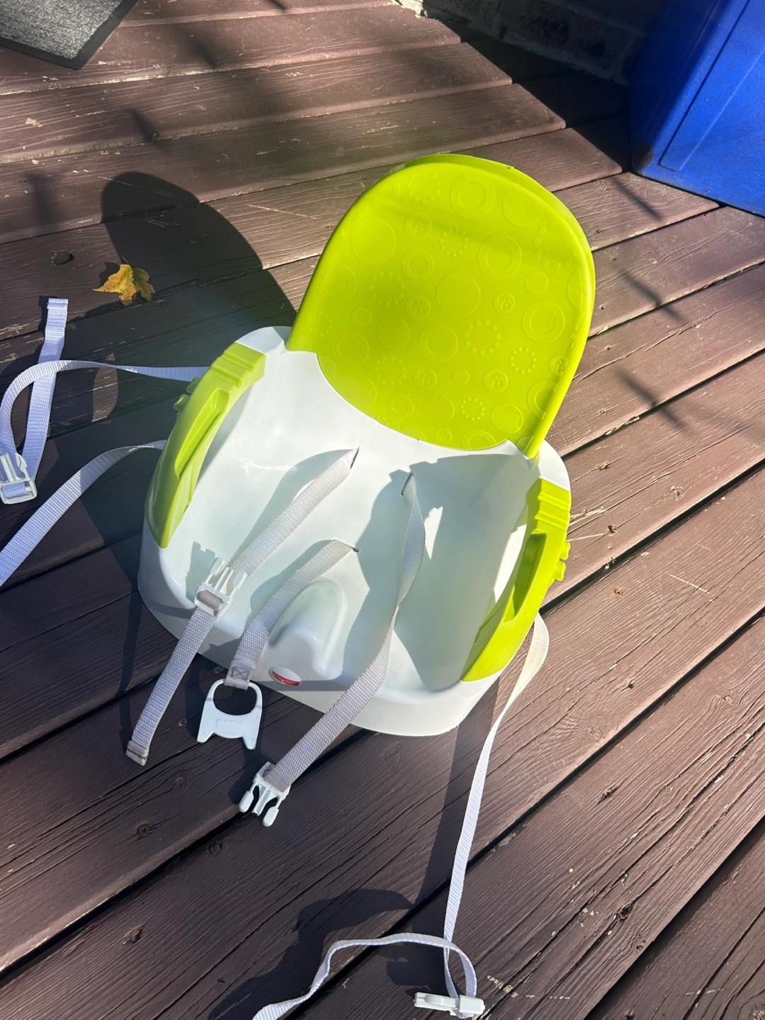 Selling a gently used Fisher-Price Sit-Me-Up Floor Seat in green and white. Great for babies who are learning to sit up! It provides support and comfort for your little one as they explore their surroundings. Recommended for ages 0-12 months. It's in great condition and ready for a new home!