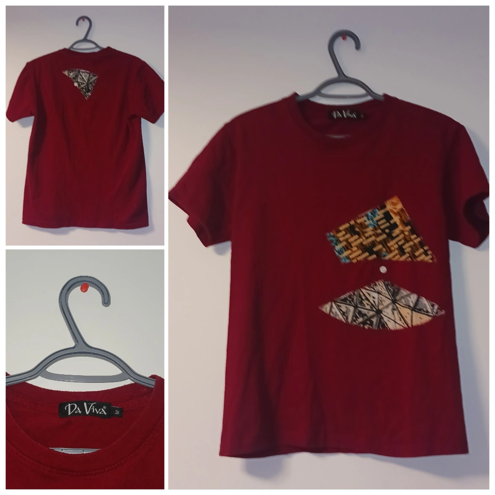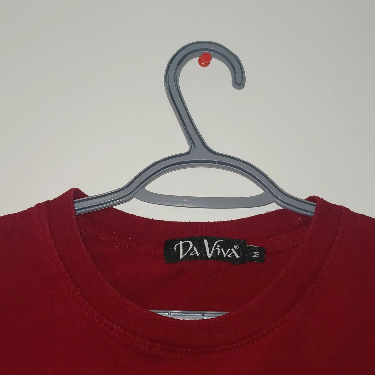Selling a Da Viva red t-shirt in size M. It features a unique design on the front and back. Great for casual wear!