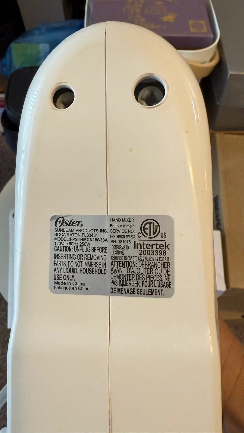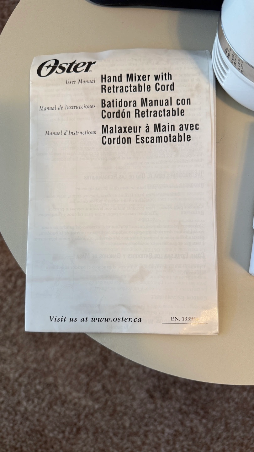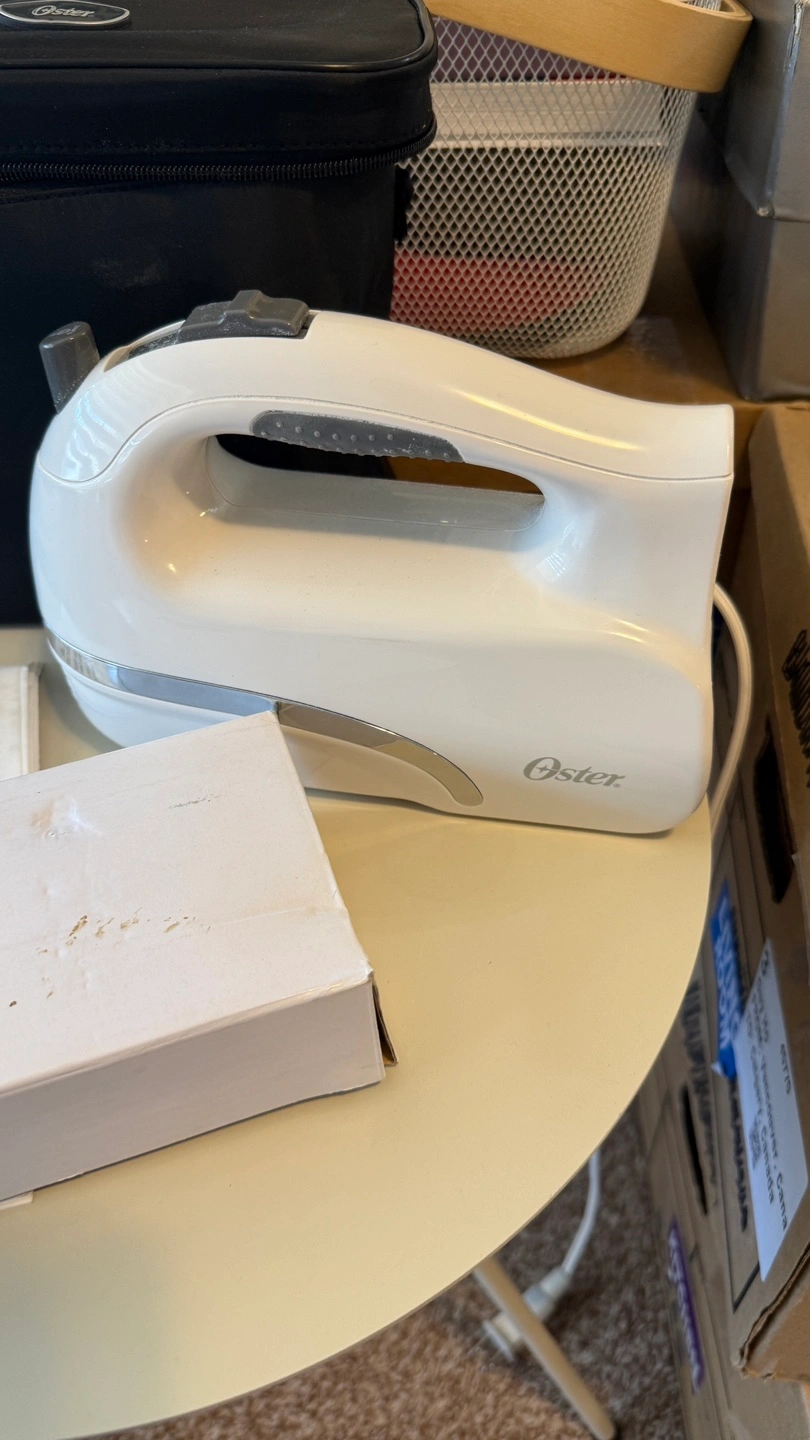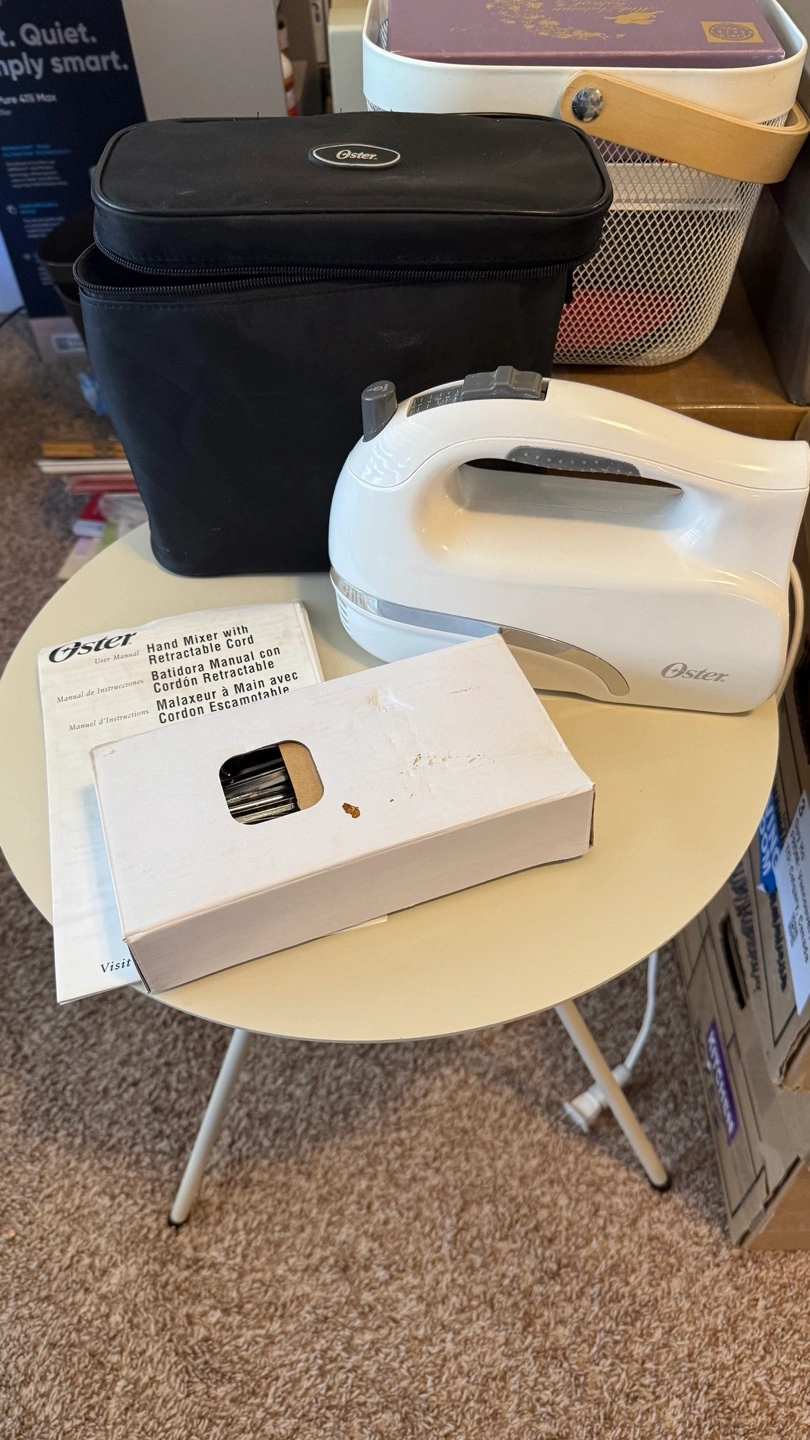 Selling an Oster hand mixer in great condition! It comes with a retractable cord for easy storage. Included is the original box and manual. Perfect for all your baking needs!