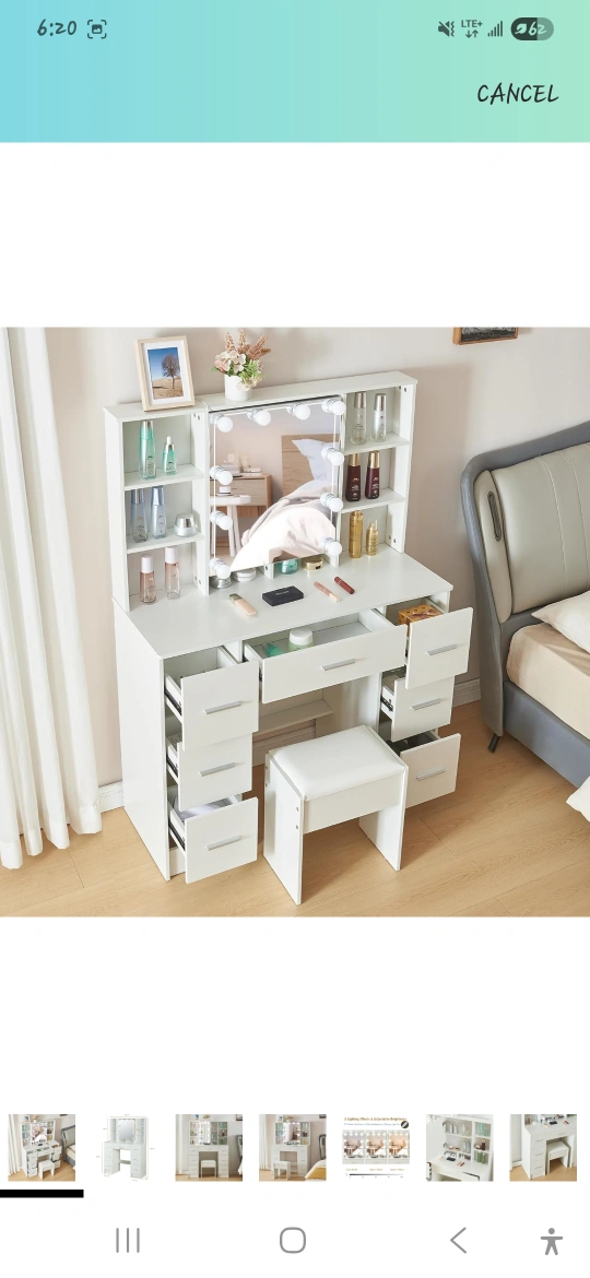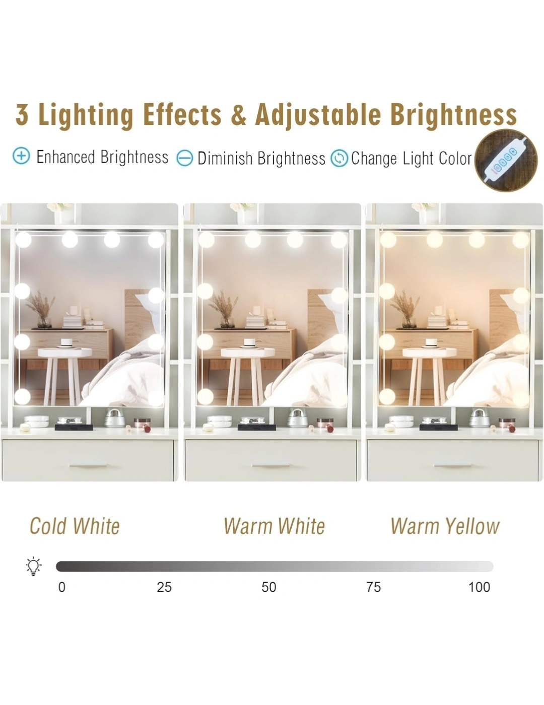 Selling a vanity table with a lighted mirror and stool! It features 3 lighting effects and adjustable brightness to get your makeup just right.