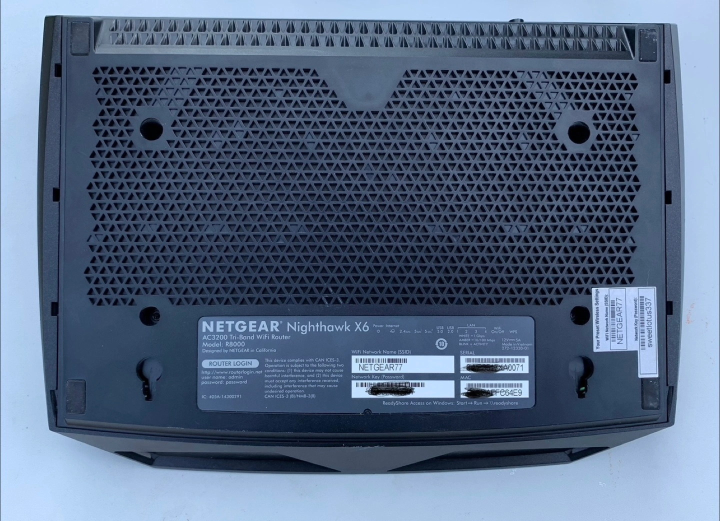 Selling a Netgear Nighthawk X6 AC3200 Tri-Band WiFi Router, model R8000. It comes with the power adapter.