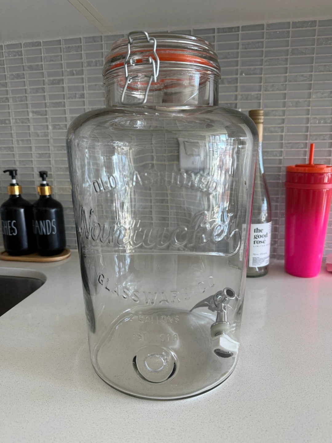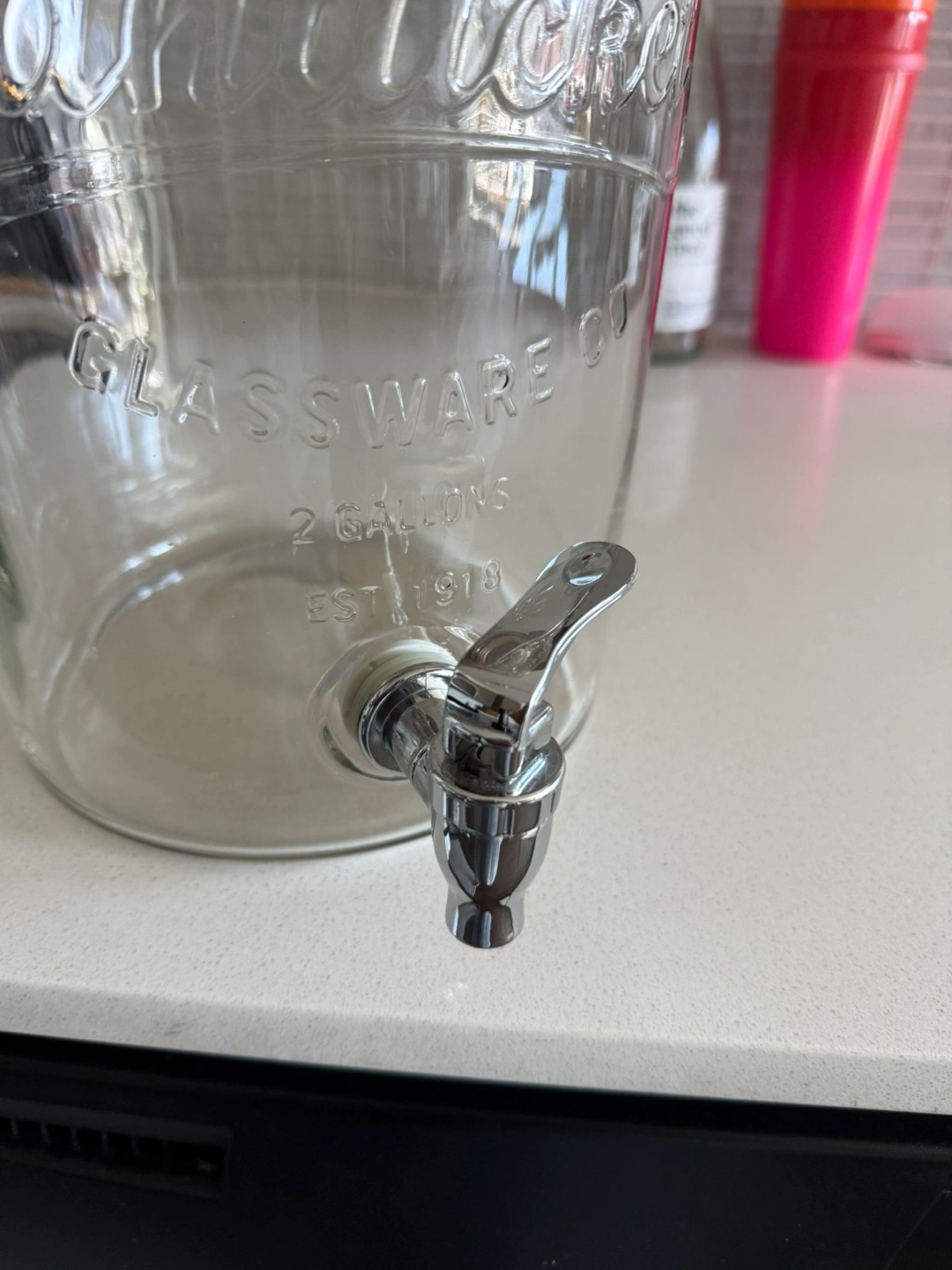 Selling a Glassware drink dispenser! It holds 2 gallons and has a classic, old-fashioned design. Perfect for parties or everyday use. It comes with all the pieces. Seals properly. Used once.