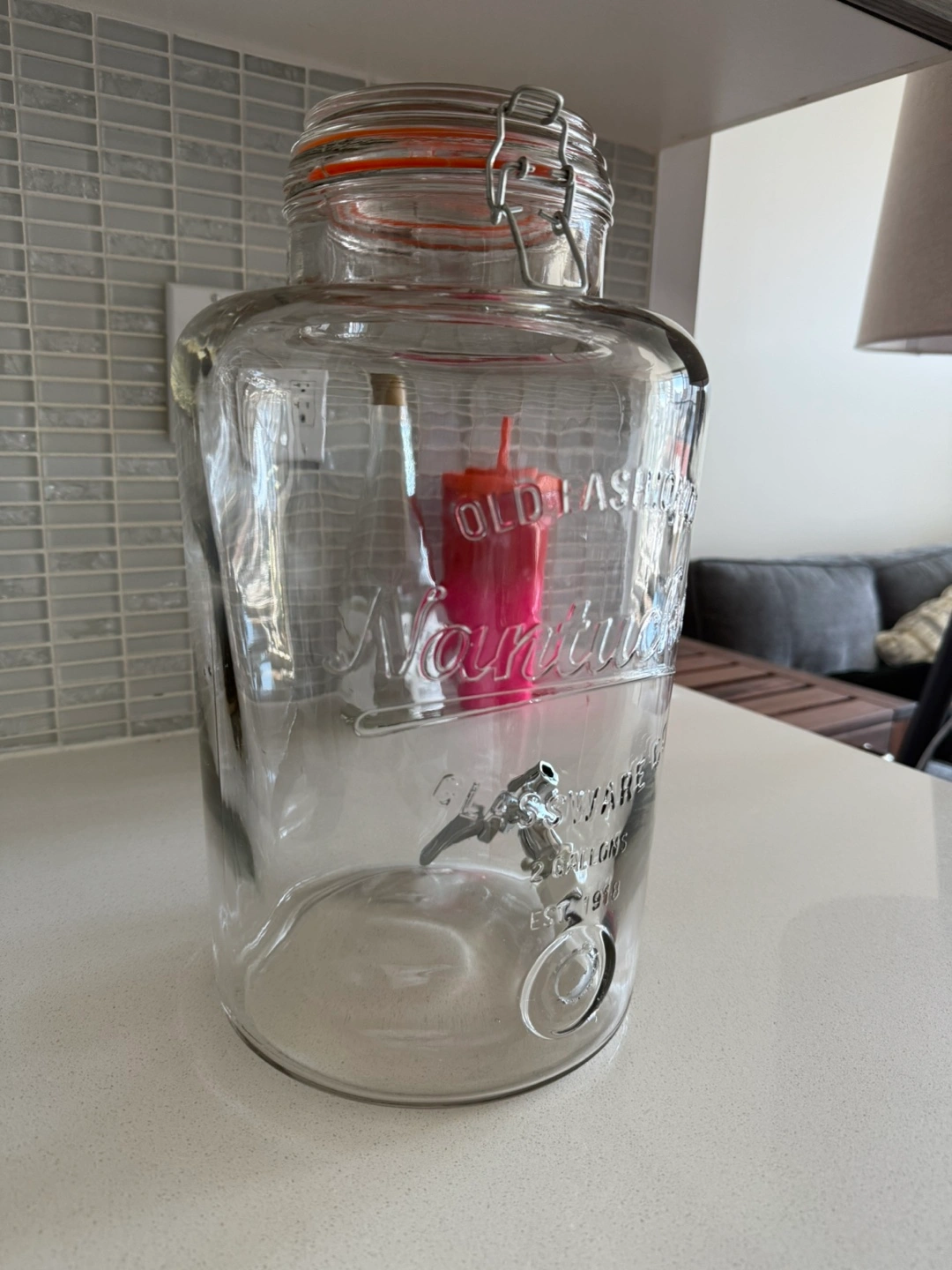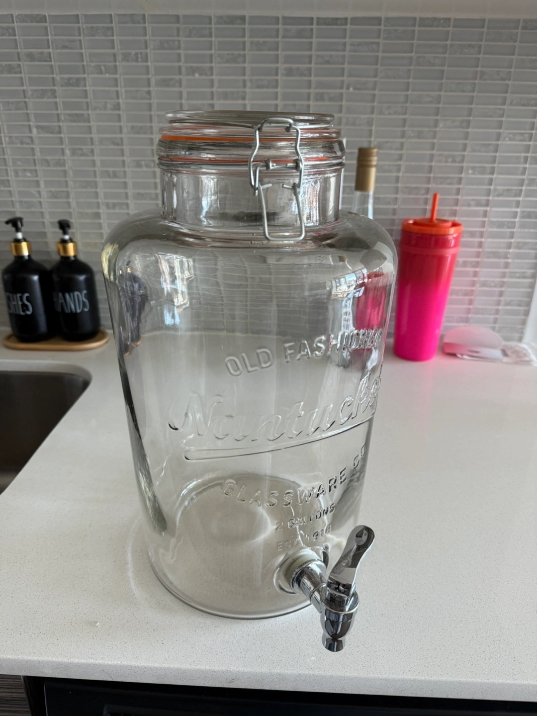 Selling a Glassware drink dispenser! It holds 2 gallons and has a classic, old-fashioned design. Perfect for parties or everyday use. It comes with all the pieces. Seals properly. Used once.
