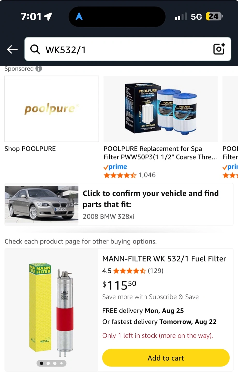 MANN WK 532/1 fuel filter designed for BMW vehicles, ensuring top-notch filtration and optimal performance. I am selling a brand new MANN BMW Fuel Filter, model WK 532/1, never installed and in perfect condition.(only Box Damaged)