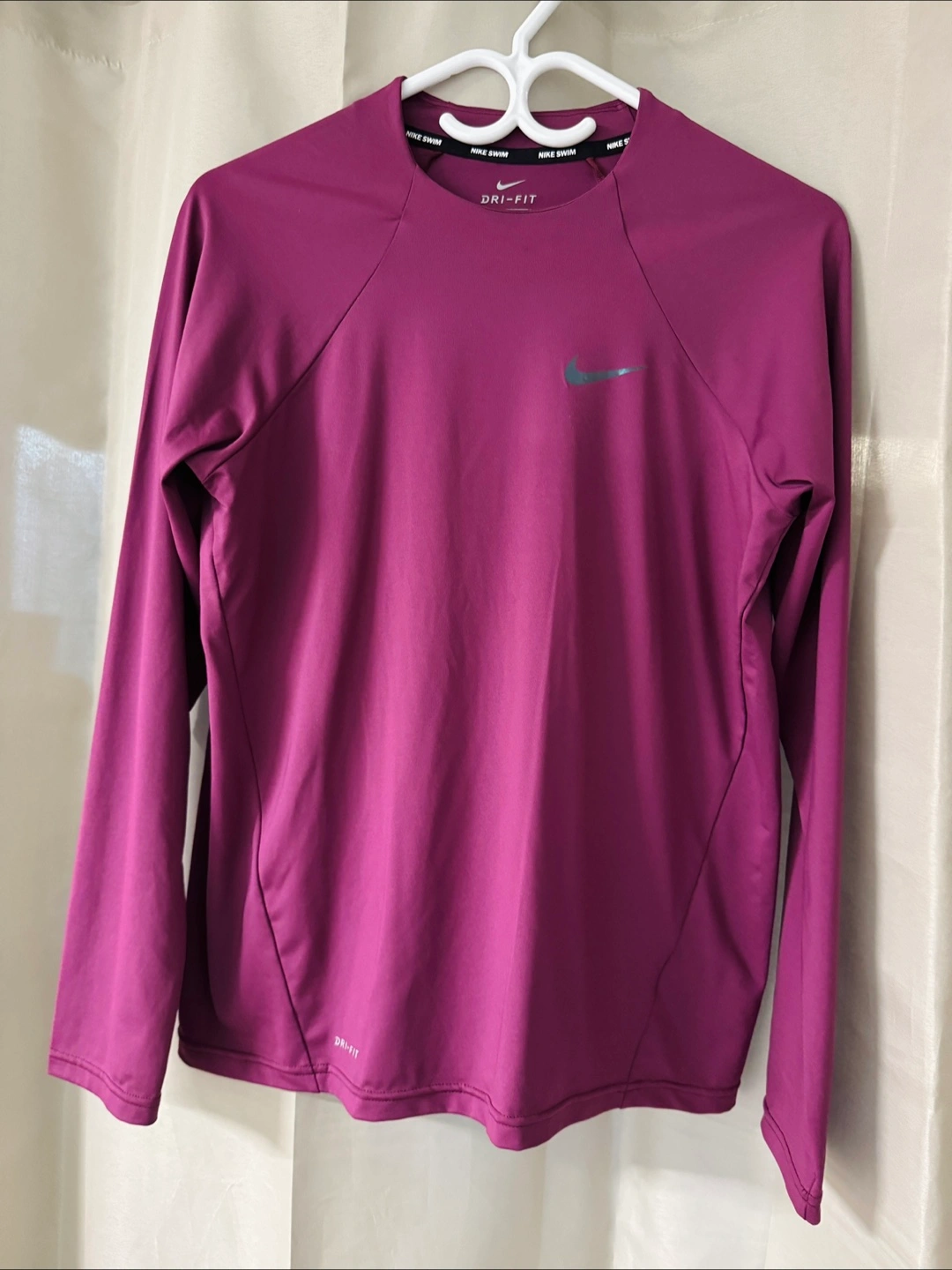 This Nike Swim Dri-FIT long sleeve is perfect for swimming or any water activity! It's a lovely plum colour and made with Dri-FIT technology to keep you comfortable. It's in great condition and ready for a new owner