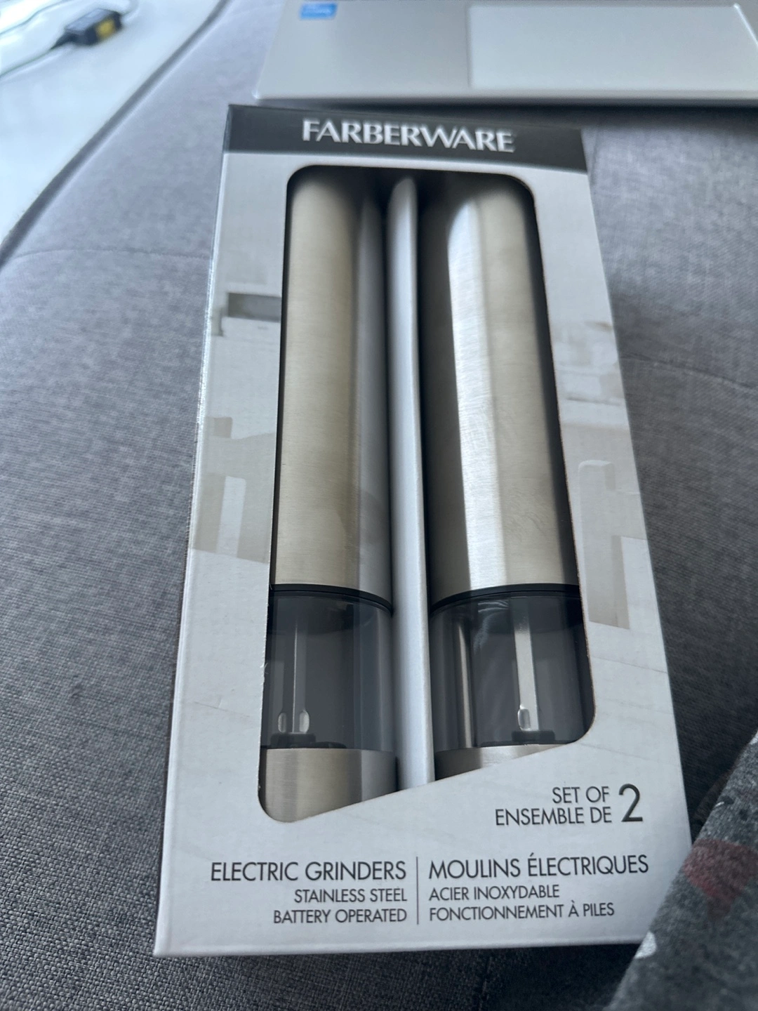 Selling a new set of Farberware electric grinders! This set includes two stainless steel, battery-operated grinders. The box is included!
