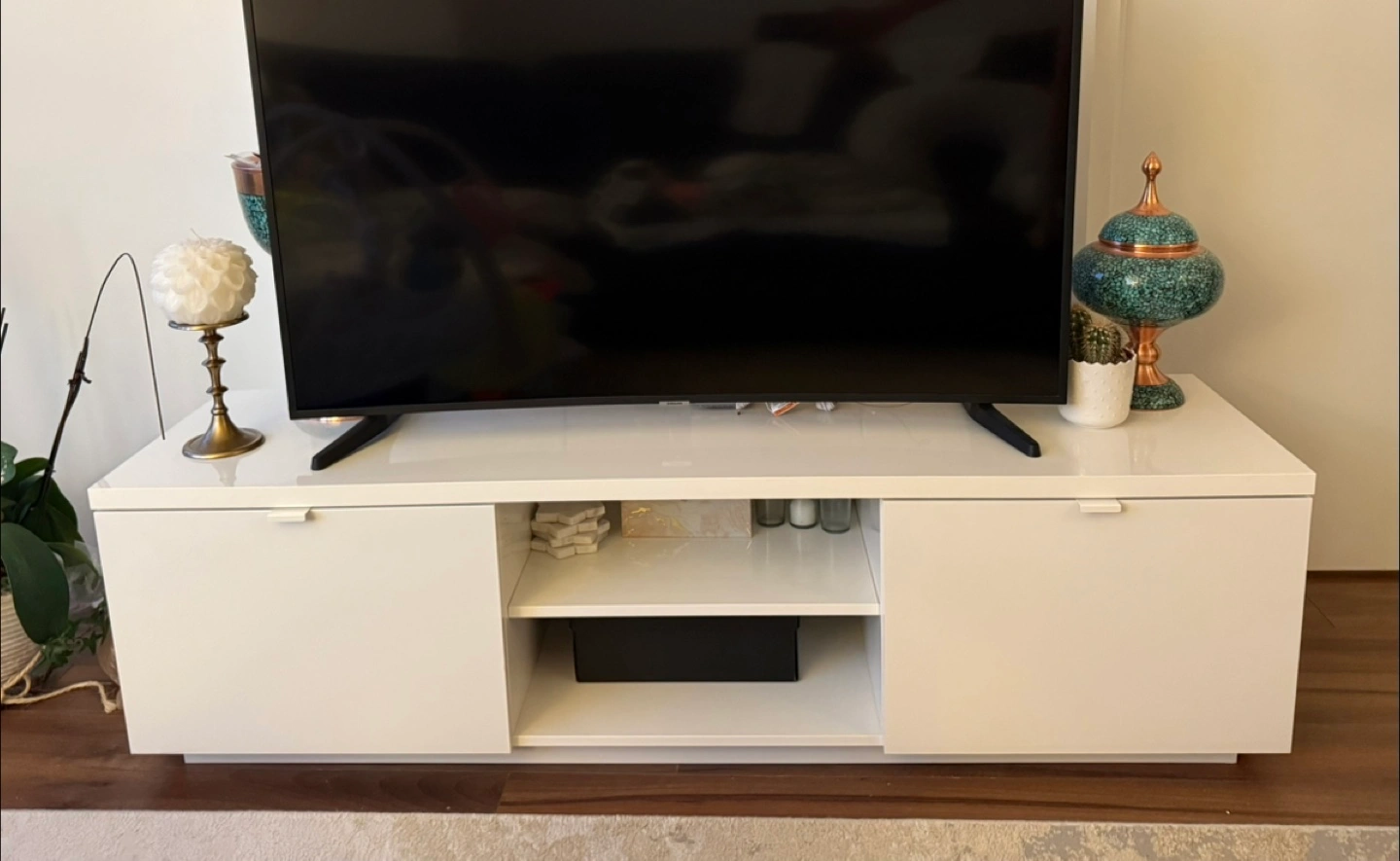 ๐ฆ Moving Sale โ IKEA BYร S TV Bench, High Gloss White (Like New)