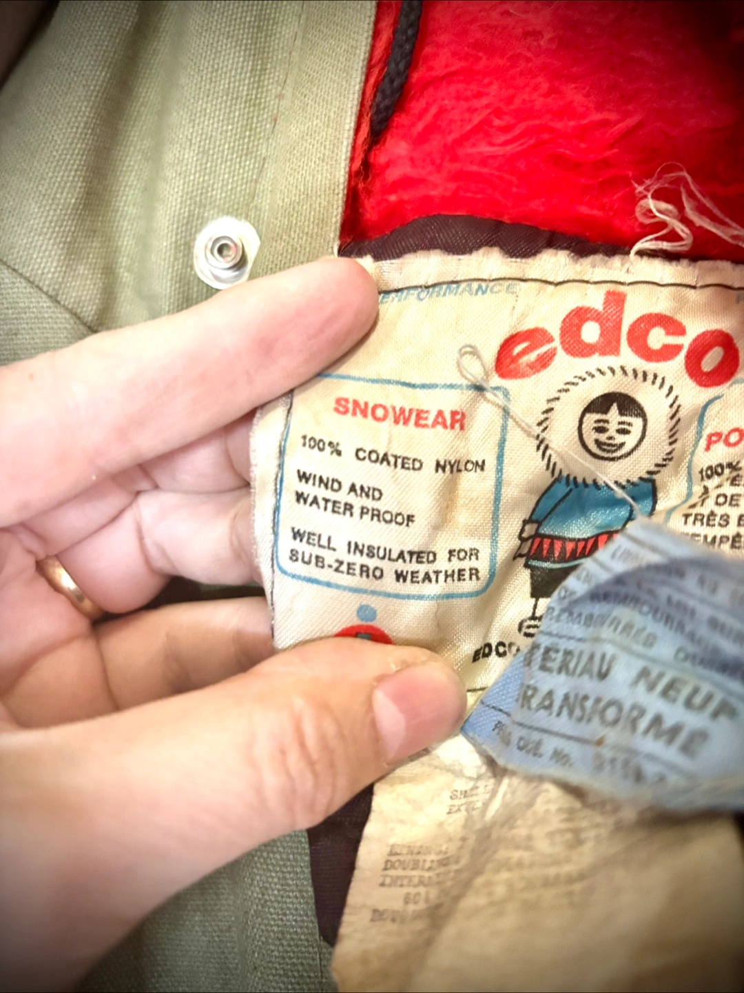 The material as "100% COATED NYLON" which is "WIND AND WATER PROOF" and "WELL INSULATED FOR SUBZERO WEATHER,"