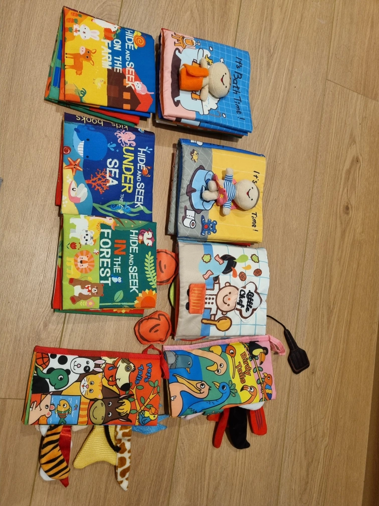 Selling a set of 8 soft baby books! These are great for sensory development and early learning. Each book has different textures and interactive elements to keep your little one entertained. They're in great condition and ready for a new home.