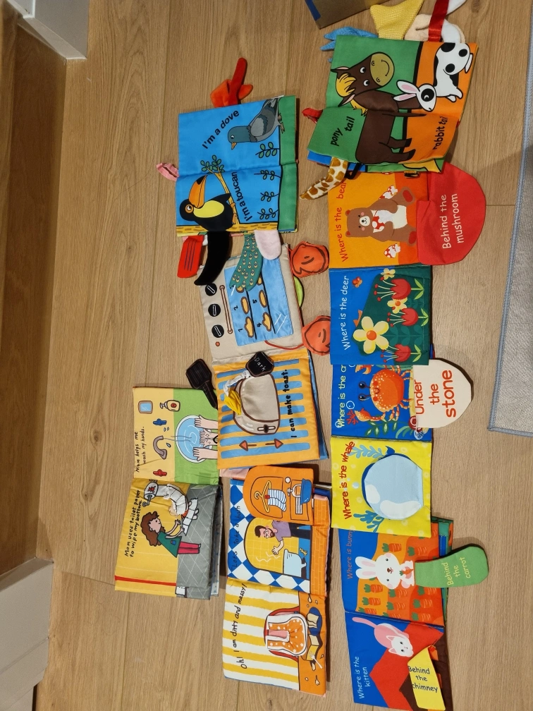 Selling a set of 8 soft baby books! These are great for sensory development and early learning. Each book has different textures and interactive elements to keep your little one entertained. They're in great condition and ready for a new home.