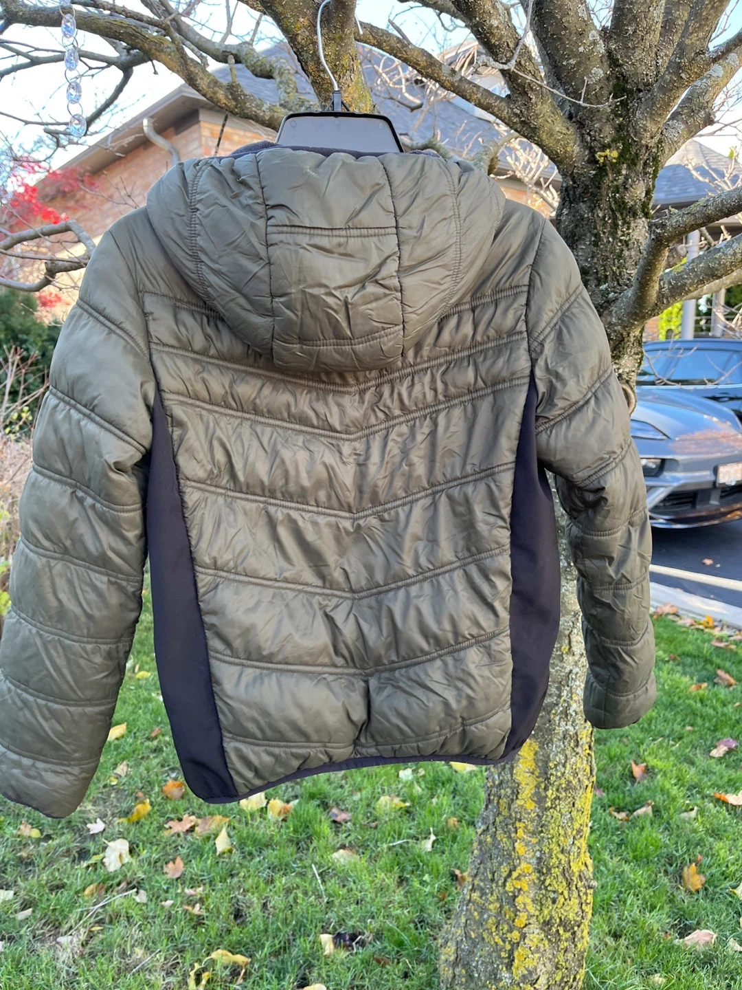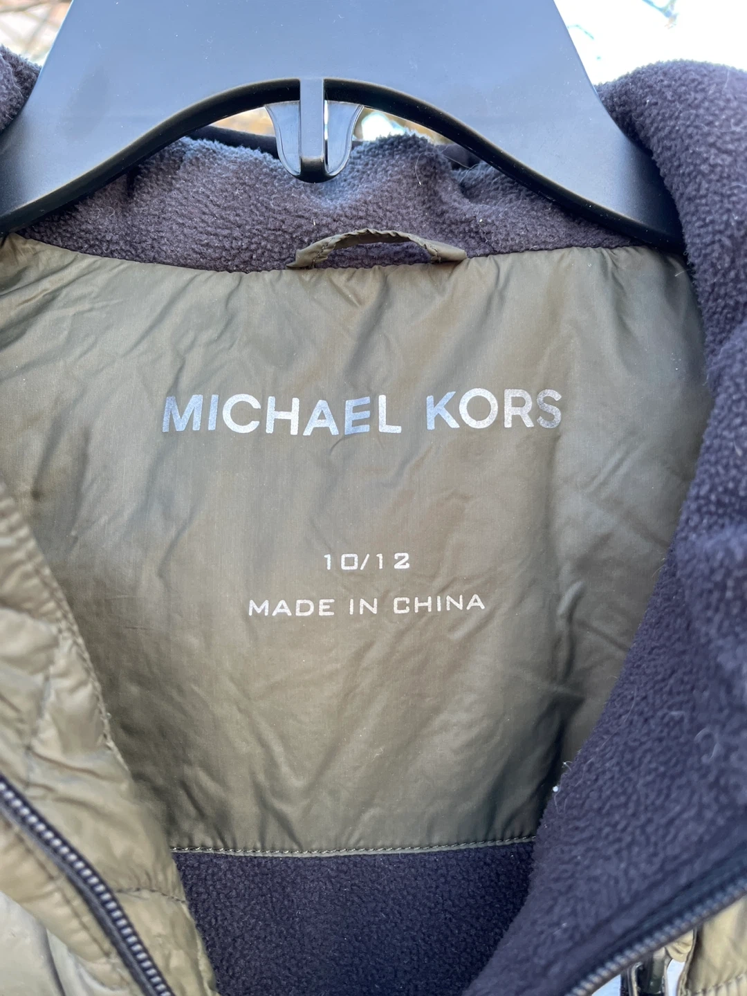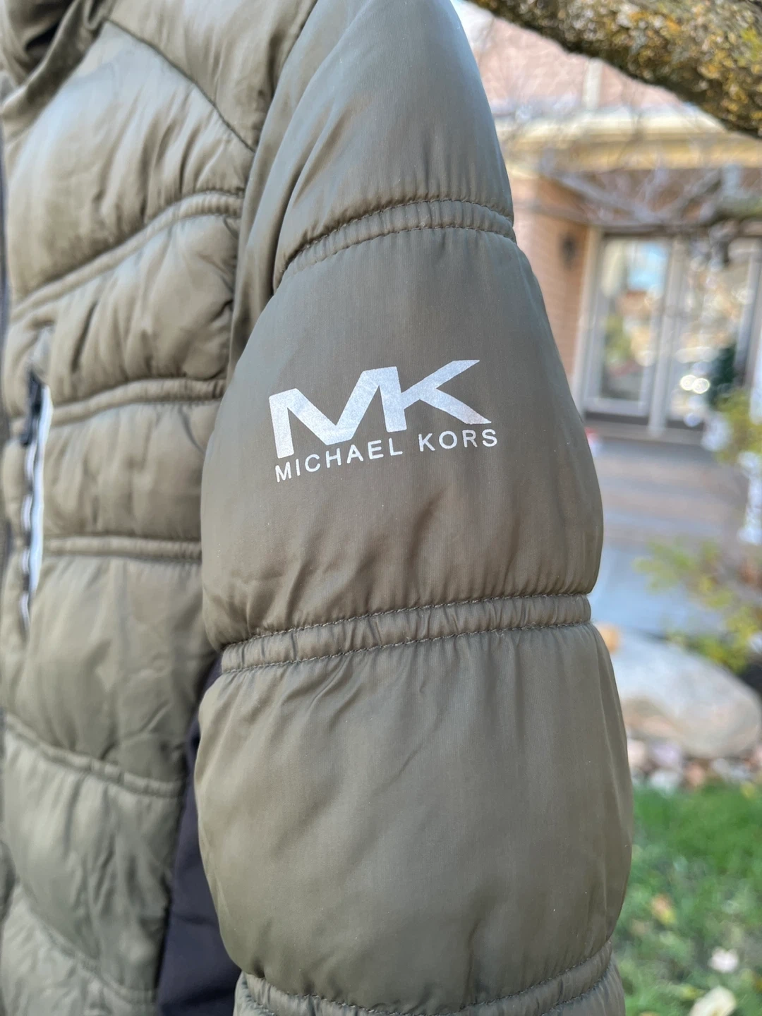 Selling a Michael Kors puffer jacket in size 10/12. It's a stylish and warm jacket, perfect for the colder weather! The colour is a nice olive green with black side panels.