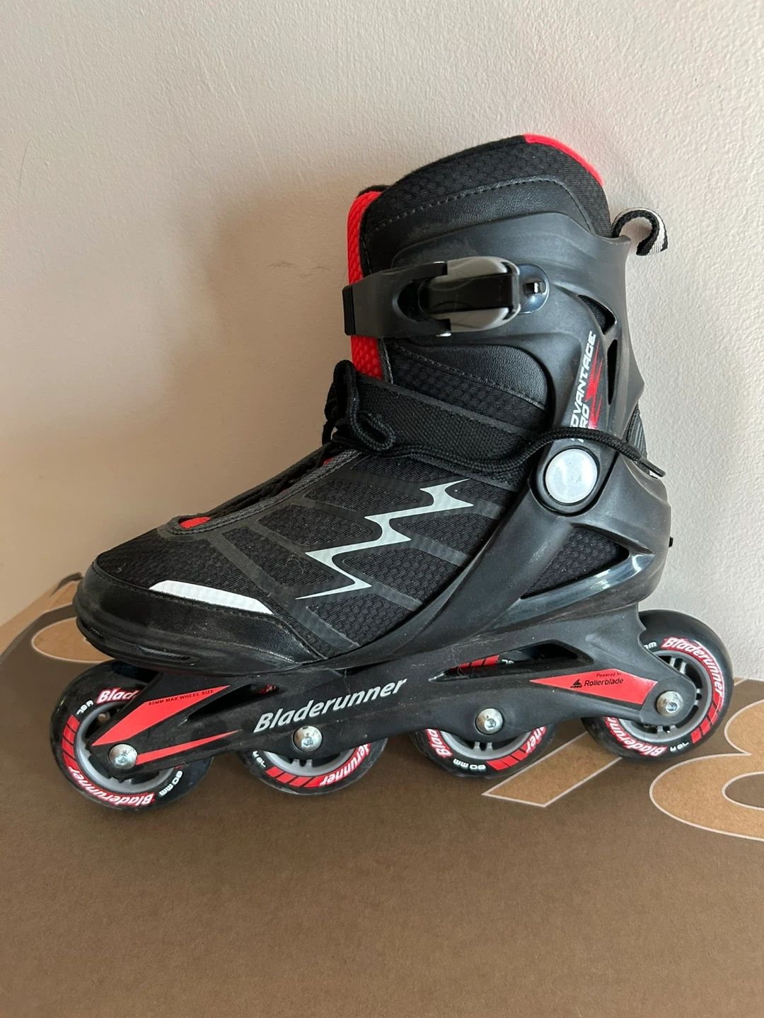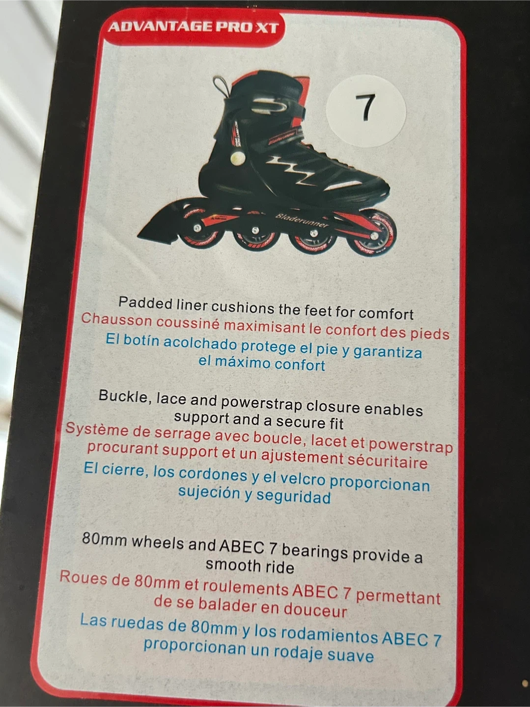 Selling a pair of Bladerunner Advantage Pro XT rollerblades in US size 7. They come in the original box! These rollerblades are black and red, and ready for some fun!