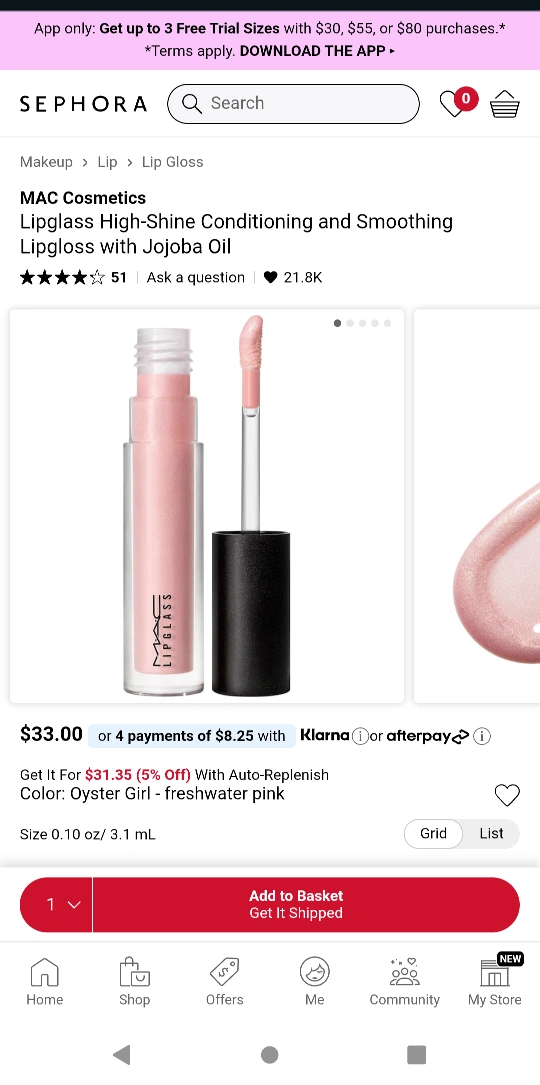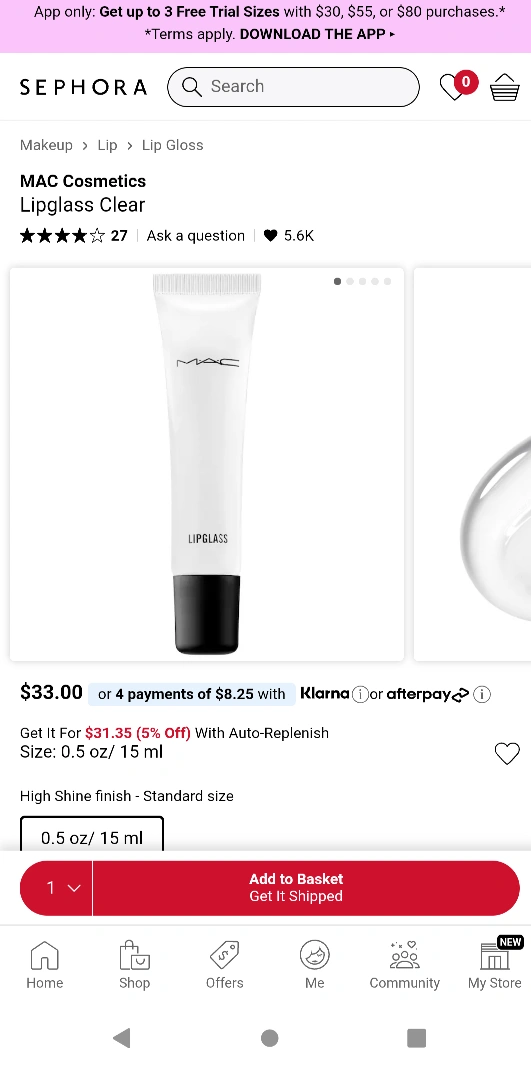 One full size lipglass clear; retail: $33 plus tax for each