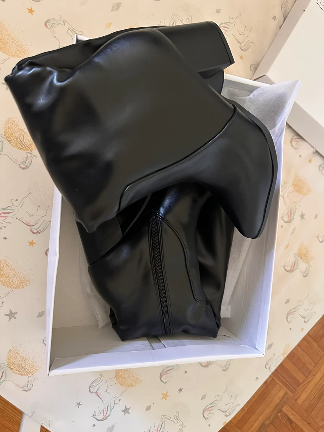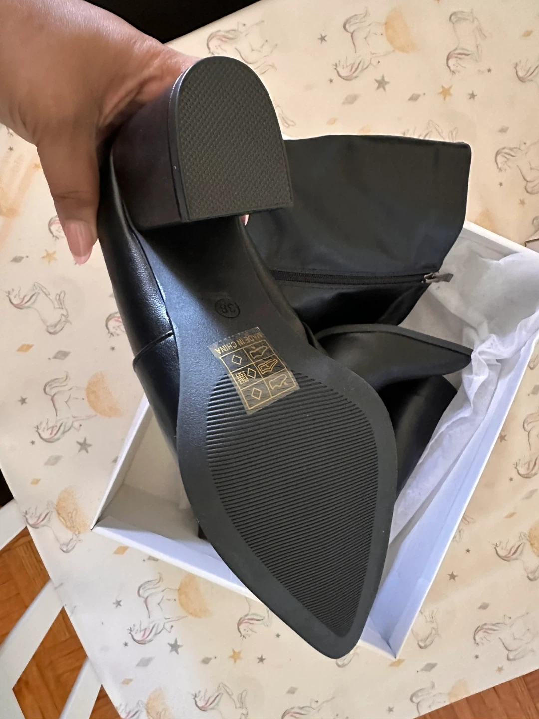 103Selling a pair of stylish black knee-high heeled boots! They are a size 38 and come with the original box. Perfect for adding a touch of elegance to any outfit! pick up eglinton ave East and Kennedy road