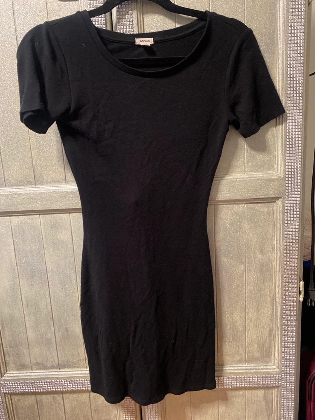 Selling a cute black mini dress from Garage! It's in great condition and perfect for a night out or a casual day. The material is comfortable and flattering. It's a wardrobe staple!