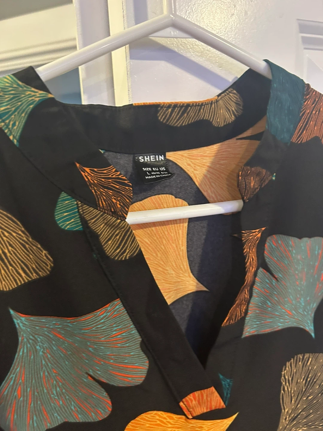 Cute Shein dress in a size large! The dress features a unique leaf pattern and a tiered design. It's perfect for a casual day out or a special occasion