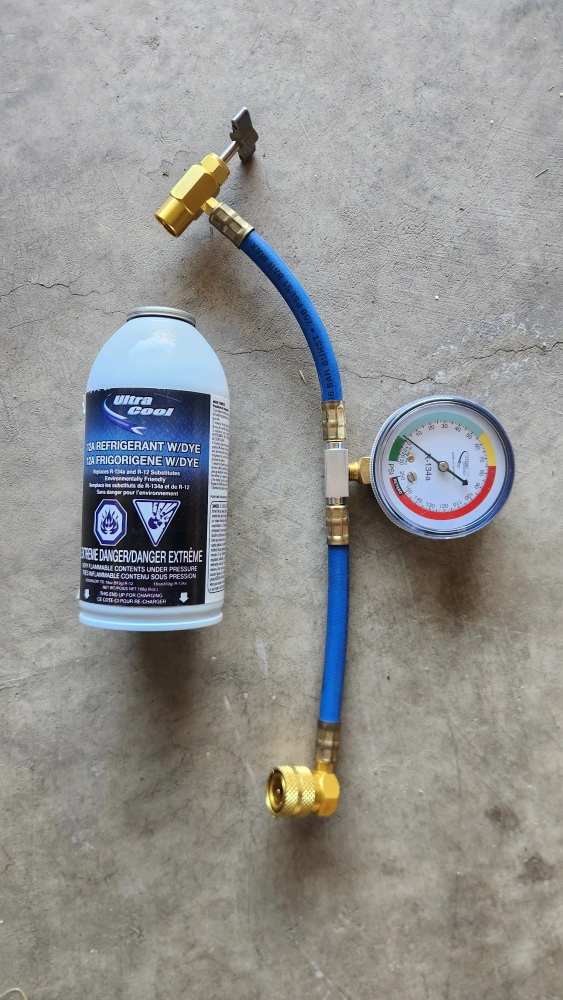 Selling 1 unused can of Ultra Cool 12A Refrigerant with Dye, along with a gauge. It replaces R-134a and R-12.