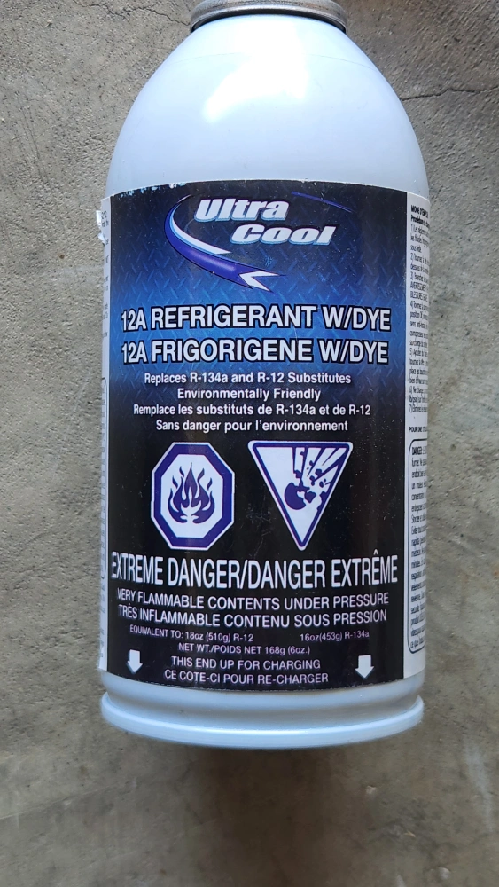 Selling 1 unused can of Ultra Cool 12A Refrigerant with Dye, along with a gauge. It replaces R-134a and R-12.