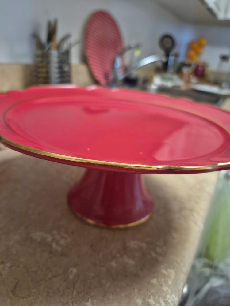 Red Cake Stand with Gold Trim
