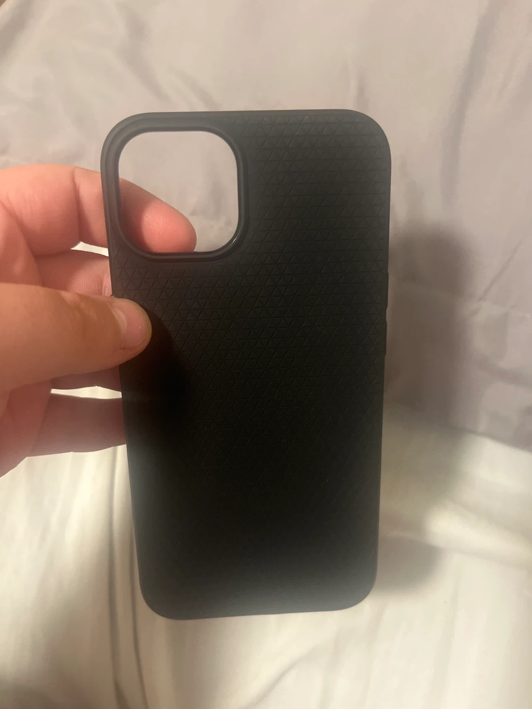 Selling a black phone case for an iPhone 13 It's in great condition and has a nice grip to it. Protect your phone in style! The one button on it is broken but other then that it’s great pick up only