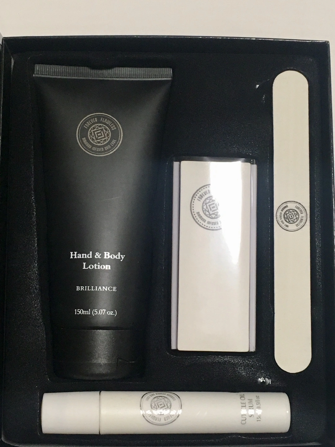 136brand new Forever Flawless Deluxe Manicure Kit! This set includes: - Hand & Body Lotion (Brilliance, 150ml/5.07 oz) - Cuticle Oil (15ml/0.50 fl oz) Comes in its original box, making it a perfect gift or a treat for yourself