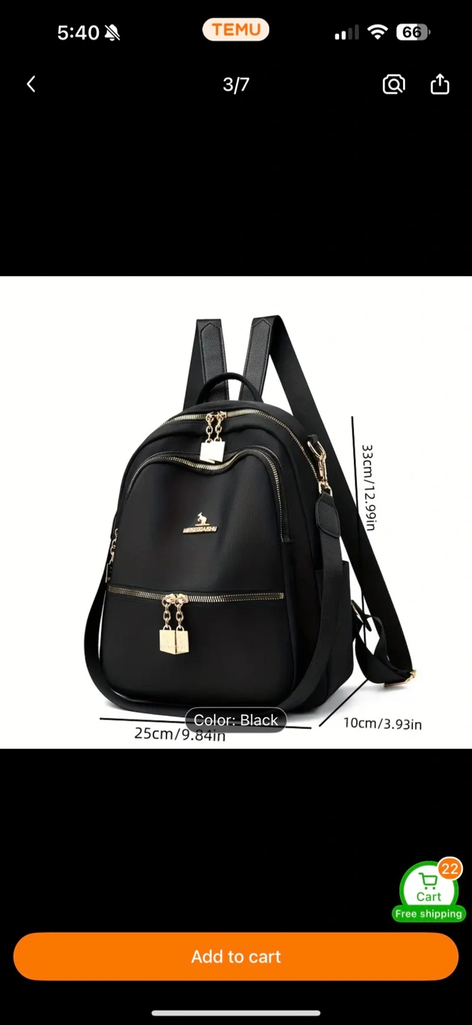 Looking to sell this women's lightweight nylon backpack! It's a large capacity, multi-compartment travel backpack with adjustable shoulder straps. It has golden-tone hardware and an embossed rabbit logo. It's black in colour and perfect for commuting, school, work, or travel!
