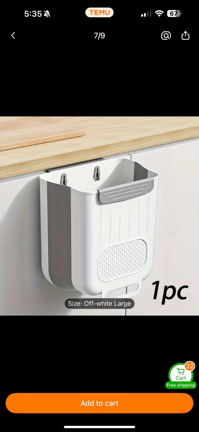 Looking to declutter your kitchen? I'm selling a foldable kitchen trash can organization rack. It's perfect for hanging on cabinets and saving space. The size is large, and the colour is off-white.